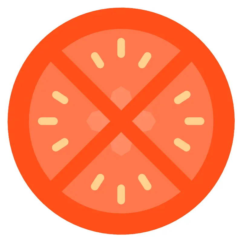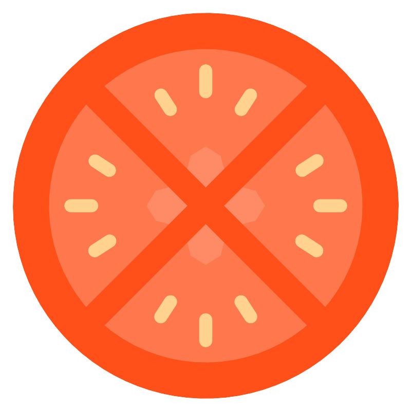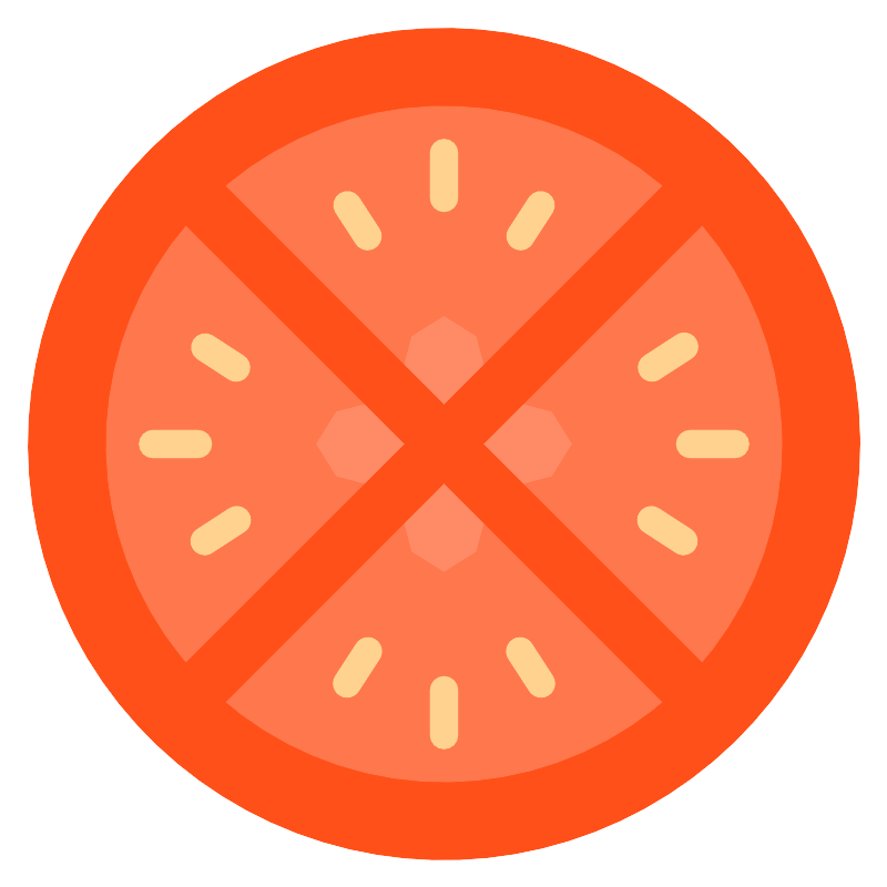 <svg width="800px" height="800px" viewBox="0 0 32 32" id="icons" xmlns="http://www.w3.org/2000/svg"><defs><style>.cls-1{fill:#ff5019;}.cls-2{fill:#ff774c;}.cls-3{fill:#ff8b66;}.cls-4{fill:#ffd28f;}</style></defs><title>Tomato</title><circle class="cls-1" cx="16" cy="16" r="15"/><circle class="cls-2" cx="16" cy="16" r="12.19"/><path class="cls-3" d="M17.72,17.72c-.12,3.83-3.33,3.83-3.45,0-3.83-.12-3.83-3.33,0-3.45.12-3.83,3.33-3.83,3.45,0C21.56,14.4,21.56,17.6,17.72,17.72Z"/><polygon class="cls-1" points="26.41 7.01 24.99 5.59 16 14.59 7.01 5.59 5.59 7.01 14.59 16 5.59 24.99 7.01 26.41 16 17.41 24.99 26.41 26.41 24.99 17.41 16 26.41 7.01"/><path class="cls-4" d="M16,7.62a.5.5,0,0,1-.5-.5V5.5a.5.5,0,0,1,1,0V7.12A.5.5,0,0,1,16,7.62Z"/><path class="cls-4" d="M18.76,9a.5.5,0,0,1-.42-.77l.74-1.14a.5.5,0,0,1,.84.54l-.74,1.14A.5.5,0,0,1,18.76,9Z"/><path class="cls-4" d="M13.24,9a.5.5,0,0,1-.42-.23l-.74-1.14a.5.5,0,0,1,.84-.54l.74,1.14a.5.5,0,0,1-.42.77Z"/><path class="cls-4" d="M16,27a.5.5,0,0,1-.5-.5V24.88a.5.5,0,0,1,1,0V26.5A.5.5,0,0,1,16,27Z"/><path class="cls-4" d="M19.5,25.14a.5.5,0,0,1-.42-.23l-.74-1.14a.5.5,0,1,1,.84-.54l.74,1.14a.5.5,0,0,1-.42.77Z"/><path class="cls-4" d="M12.5,25.14a.5.5,0,0,1-.42-.77l.74-1.14a.5.5,0,1,1,.84.54l-.74,1.14A.5.5,0,0,1,12.5,25.14Z"/><path class="cls-4" d="M7.12,16.5H5.5a.5.5,0,0,1,0-1H7.12a.5.5,0,1,1,0,1Z"/><path class="cls-4" d="M8.5,13.74a.5.5,0,0,1-.27-.08l-1.14-.74a.5.5,0,0,1,.54-.84l1.14.74a.5.5,0,0,1-.27.92Z"/><path class="cls-4" d="M7.36,20a.5.5,0,0,1-.27-.92l1.14-.74a.5.5,0,1,1,.54.84l-1.14.74A.5.5,0,0,1,7.36,20Z"/><path class="cls-4" d="M26.5,16.5H24.88a.5.5,0,0,1,0-1H26.5a.5.5,0,0,1,0,1Z"/><path class="cls-4" d="M23.5,13.74a.5.5,0,0,1-.27-.92l1.14-.74a.5.5,0,1,1,.54.84l-1.14.74A.5.5,0,0,1,23.5,13.74Z"/><path class="cls-4" d="M24.64,20a.5.5,0,0,1-.27-.08l-1.14-.74a.5.5,0,1,1,.54-.84l1.14.74a.5.5,0,0,1-.27.92Z"/></svg>