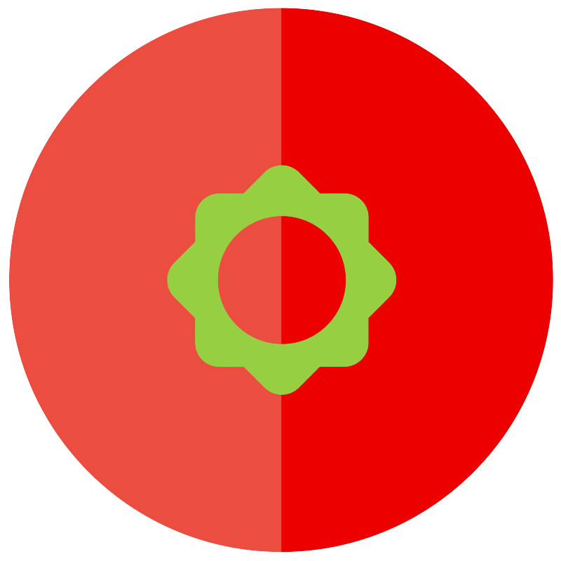 <svg width="800px" height="800px" viewBox="0 0 1024 1024" class="icon" version="1.1" xmlns="http://www.w3.org/2000/svg"><path d="M512.50176 14.52032c273.87904 0 495.90272 222.02368 495.90272 495.90272s-222.02368 495.90272-495.90272 495.90272V14.52032z" fill="#ED0000" /><path d="M512.50176 14.52032C238.62272 14.52032 16.59904 236.544 16.59904 510.42304s222.02368 495.90272 495.90272 495.90272V14.52032z" fill="#EB4E41" /><path d="M513.75104 510.41792m-75.7504 0a75.7504 75.7504 0 1 0 151.5008 0 75.7504 75.7504 0 1 0-151.5008 0Z" fill="#30C03F" /><path d="M709.43744 479.0528l-37.70368-37.76512 0.03072-45.04064a43.44832 43.44832 0 0 0-43.49952-43.49952l-44.90752 0.03072-38.36416-38.4256a44.24192 44.24192 0 0 0-62.63296 0l-38.4768 38.53824-44.20608 0.03072c-24.0384 0.02048-43.55072 19.5328-43.5712 43.5712l-0.03072 44.34432-38.15424 38.21568a44.40064 44.40064 0 0 0 0 62.73536l38.0416 38.11328-0.03072 45.184a43.44832 43.44832 0 0 0 43.49952 43.49952l45.05088-0.03072 37.87776 37.9392a44.24192 44.24192 0 0 0 62.63296 0l37.9904-38.05184 45.04064-0.03072a43.6224 43.6224 0 0 0 43.5712-43.5712l0.03072-45.184 37.81632-37.86752c17.28512-17.32096 17.28512-45.4144-0.00512-62.73536z m-195.58912 148.69504c-64.70144 0-117.15584-52.4544-117.15584-117.15584 0-64.70144 52.4544-117.15584 117.15584-117.15584s117.16096 52.4544 117.16096 117.15584c-0.00512 64.70144-52.45952 117.15584-117.16096 117.15584z" fill="#97CF43" /></svg>