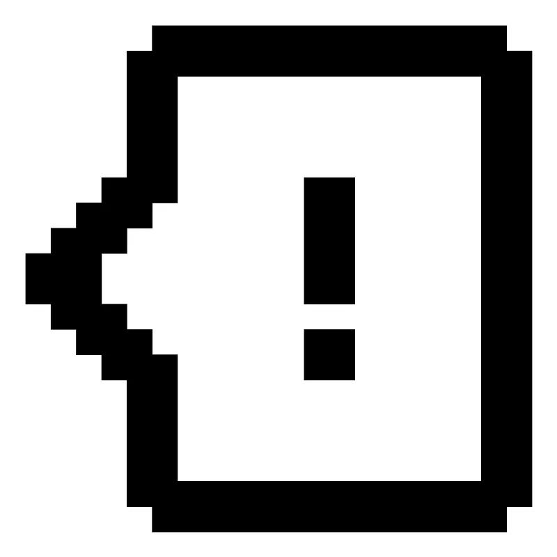 <svg fill="#000000" width="800px" height="800px" viewBox="0 0 22 22" xmlns="http://www.w3.org/2000/svg" id="memory-tooltip-end-alert"><path d="M14 15H12V13H14V15M14 12H12V7H14V12M21 2V20H20V21H6V20H5V15H4V14H3V13H2V12H1V10H2V9H3V8H4V7H5V2H6V1H20V2H21M19 3H7V8H6V9H5V10H4V12H5V13H6V14H7V19H19V3Z" /></svg>