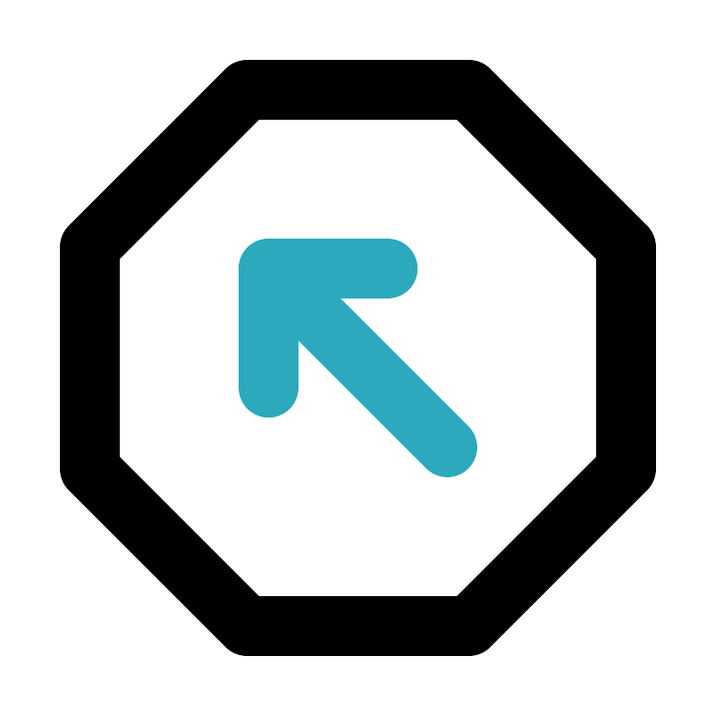 <svg fill="#000000" width="800px" height="800px" viewBox="0 0 24 24" id="top-left-octagon" data-name="Line Color" xmlns="http://www.w3.org/2000/svg" class="icon line-color"><line id="secondary" x1="15" y1="15" x2="9" y2="9" style="fill: none; stroke: rgb(44, 169, 188); stroke-linecap: round; stroke-linejoin: round; stroke-width: 2;"></line><polyline id="secondary-2" data-name="secondary" points="9 13 9 9 13 9" style="fill: none; stroke: rgb(44, 169, 188); stroke-linecap: round; stroke-linejoin: round; stroke-width: 2;"></polyline><polygon id="primary" points="15.73 3 21 8.27 21 15.73 15.73 21 8.27 21 3 15.73 3 8.27 8.27 3 15.73 3" style="fill: none; stroke: rgb(0, 0, 0); stroke-linecap: round; stroke-linejoin: round; stroke-width: 2;"></polygon></svg>
