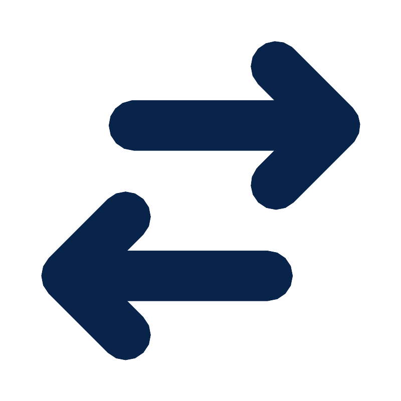 <path d="M8.56079,11.89935 C9.14658,12.48515 9.14658,13.43485 8.56079,14.02065 L7.58592,14.99555 L16.0001,14.99555 C16.8285,14.99555 17.5001,15.66715 17.5001,16.49555 C17.5001,17.32395 16.8285,17.99555 16.0001,17.99555 L7.58592,17.99555 L8.56079,18.97045 C9.14658,19.55625 9.14658,20.50595 8.56079,21.09175 C7.97501,21.67755 7.02526,21.67755 6.43947,21.09175 L2.90394,17.55615 C2.31815,16.97045 2.31815,16.02065 2.90394,15.43485 L6.43947,11.89935 C7.02526,11.31355 7.97501,11.31355 8.56079,11.89935 Z M15.4394,2.8993425 C15.9885875,2.35016437 16.857609,2.31584074 17.4467757,2.7963716 L17.5607,2.8993425 L21.0962,6.4348725 C21.6453875,6.98405062 21.6797117,7.85310668 21.1991727,8.44226955 L21.0962,8.5561925 L17.5607,12.0917425 C16.9749,12.6775425 16.0252,12.6775425 15.4394,12.0917425 C14.8902125,11.542555 14.8558883,10.6734456 15.3364273,10.0843503 L15.4394,9.9704425 L16.4142,8.9955325 L8,8.9955325 C7.17157,8.9955325 6.5,8.3239625 6.5,7.4955325 C6.5,6.71583368 7.09488554,6.0750835 7.85553954,6.00239905 L8,5.9955325 L16.4142,5.9955325 L15.4394,5.0206625 C14.8536,4.4348725 14.8536,3.4851225 15.4394,2.8993425 Z" id="形状" fill="#09244B">