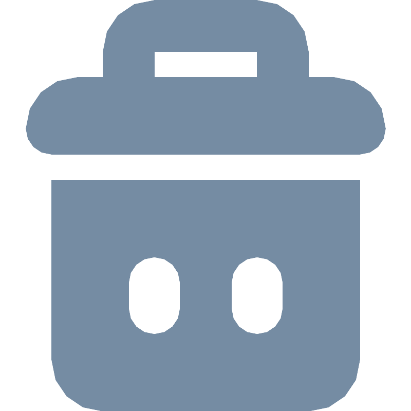 <svg width="800px" height="800px" viewBox="-1 0 16 16" id="meteor-icon-kit__solid-trash-s" fill="none" xmlns="http://www.w3.org/2000/svg"><path fill-rule="evenodd" clip-rule="evenodd" d="M4 11V12C4 12.5523 4.44772 13 5 13C5.5523 13 6 12.5523 6 12V11C6 10.4477 5.5523 10 5 10C4.44772 10 4 10.4477 4 11zM8 11V12C8 12.5523 8.4477 13 9 13C9.5523 13 10 12.5523 10 12V11C10 10.4477 9.5523 10 9 10C8.4477 10 8 10.4477 8 11zM3 3V2C3 0.89543 3.89543 0 5 0H9C10.1046 0 11 0.89543 11 2V3H12C13.1046 3 14 3.89543 14 5C14 5.55228 13.5523 6 13 6H1C0.44772 6 0 5.55228 0 5C0 3.89543 0.89543 3 2 3H3zM1 7H13V14C13 15.1046 12.1046 16 11 16H3C1.89543 16 1 15.1046 1 14V7zM5 3H9V2H5V3z" fill="#758CA3"/></svg>