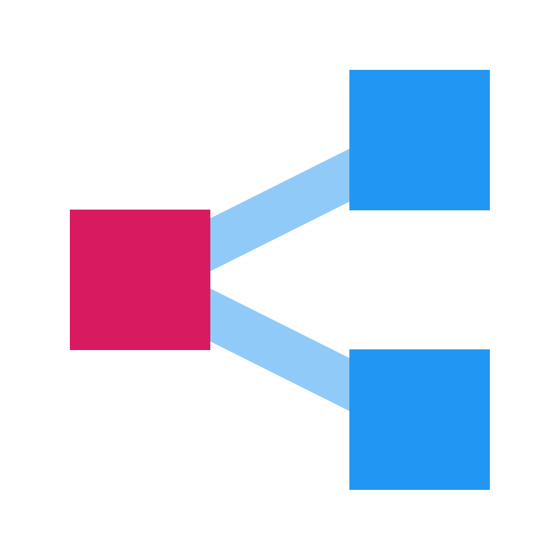 <svg width="800px" height="800px" viewBox="0 0 1024 1024" class="icon" version="1.1" xmlns="http://www.w3.org/2000/svg"><path d="M787.2 294.4l-38.4-76.8L160 512l588.8 294.4 38.4-76.8L352 512z" fill="#90CAF9" /><path d="M128 384h256v256H128z" fill="#D81B60" /><path d="M640 128h256v256H640zM640 640h256v256H640z" fill="#2196F3" /></svg>