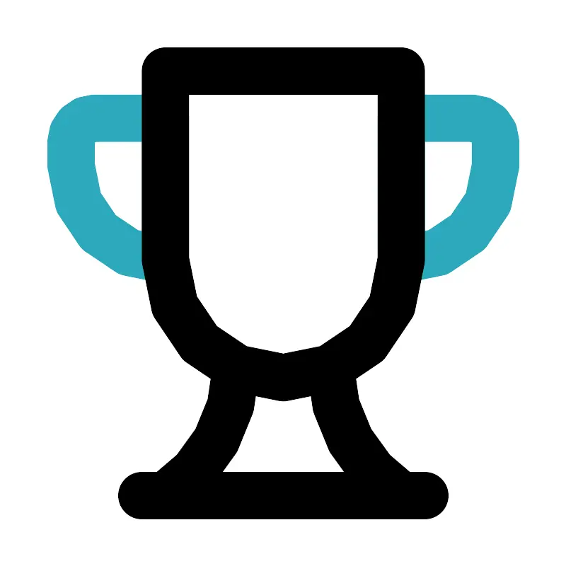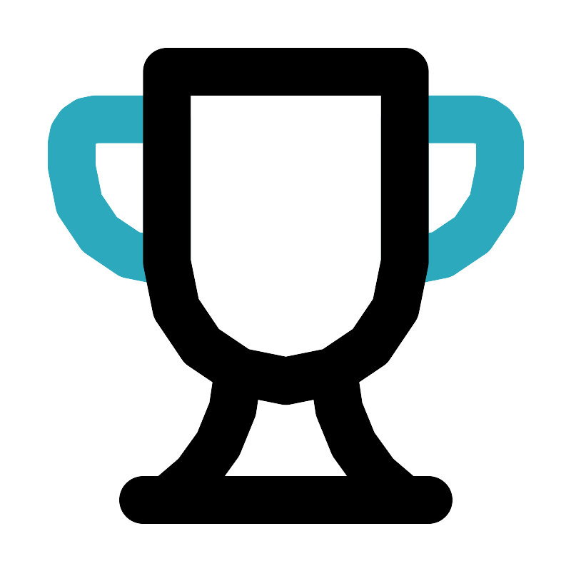 <svg fill="#000000" width="800px" height="800px" viewBox="0 0 24 24" id="trophy-3" data-name="Line Color" xmlns="http://www.w3.org/2000/svg" class="icon line-color"><path id="secondary" d="M17,6h1a4,4,0,0,1,4,4v0a0,0,0,0,1,0,0H16a0,0,0,0,1,0,0V7A1,1,0,0,1,17,6Z" transform="translate(27 -11) rotate(90)" style="fill: none; stroke: rgb(44, 169, 188); stroke-linecap: round; stroke-linejoin: round; stroke-width: 2;"></path><path id="secondary-2" data-name="secondary" d="M3,5H3A4,4,0,0,1,7,9v1a1,1,0,0,1-1,1H3a0,0,0,0,1,0,0V5A0,0,0,0,1,3,5Z" transform="translate(10 16) rotate(180)" style="fill: none; stroke: rgb(44, 169, 188); stroke-linecap: round; stroke-linejoin: round; stroke-width: 2;"></path><path id="primary" d="M14,15.58A6.73,6.73,0,0,0,17,21H7a6.73,6.73,0,0,0,3-5.42" style="fill: none; stroke: rgb(0, 0, 0); stroke-linecap: round; stroke-linejoin: round; stroke-width: 2;"></path><path id="primary-2" data-name="primary" d="M12,16h0a5,5,0,0,1-5-5V3H17v8A5,5,0,0,1,12,16Zm6,5H6" style="fill: none; stroke: rgb(0, 0, 0); stroke-linecap: round; stroke-linejoin: round; stroke-width: 2;"></path></svg>