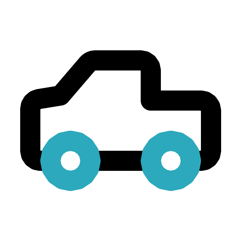 <svg fill="#000000" width="800px" height="800px" viewBox="0 0 24 24" id="truck-pick-up-2" data-name="Line Color" xmlns="http://www.w3.org/2000/svg" class="icon line-color"><path id="primary" d="M5,16H4a1,1,0,0,1-1-1V10.85a1,1,0,0,1,.84-1L6,9.5,8.7,6.35A1,1,0,0,1,9.46,6H14a1,1,0,0,1,1,1v3h5a1,1,0,0,1,1,1v4a1,1,0,0,1-1,1H19" style="fill: none; stroke: rgb(0, 0, 0); stroke-linecap: round; stroke-linejoin: round; stroke-width: 2;"></path><line id="primary-2" data-name="primary" x1="15" y1="16" x2="9" y2="16" style="fill: none; stroke: rgb(0, 0, 0); stroke-linecap: round; stroke-linejoin: round; stroke-width: 2;"></line><path id="secondary" d="M15,16a2,2,0,1,0,2-2A2,2,0,0,0,15,16ZM5,16a2,2,0,1,0,2-2A2,2,0,0,0,5,16Z" style="fill: none; stroke: rgb(44, 169, 188); stroke-linecap: round; stroke-linejoin: round; stroke-width: 2;"></path></svg>
