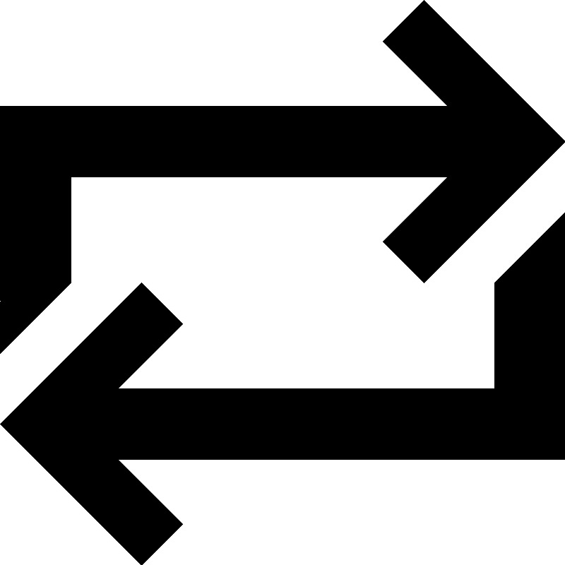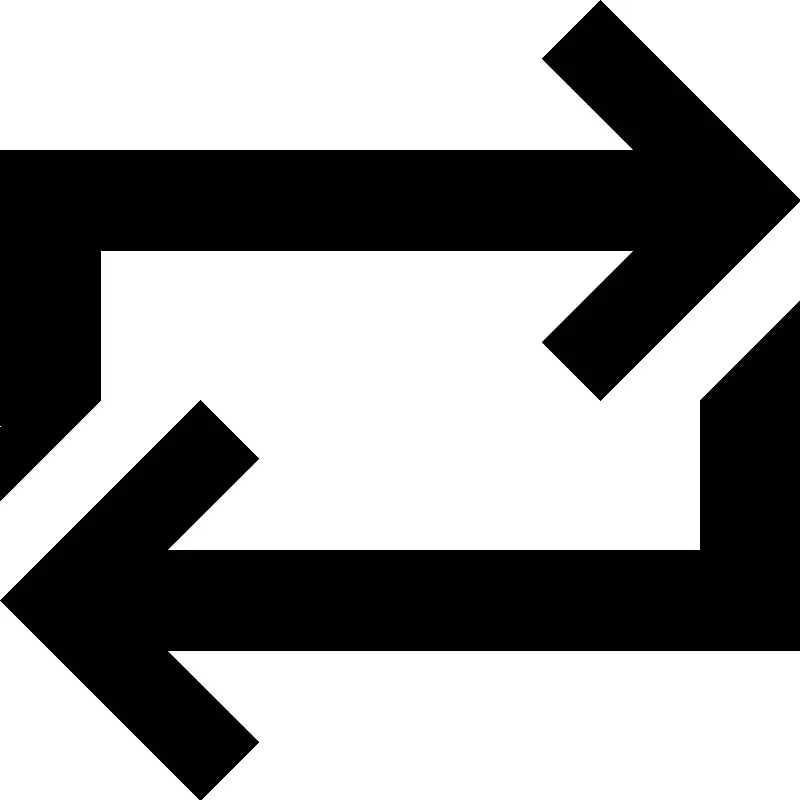 <path d="M2,5h10.672l-1.837,1.834L12,8l4-4l-4-4l-1.166,1.166L12.672,3H0v7l2-2V5z M14,11H3.328l1.838-1.834L4,8l-4,4l4,4 l1.166-1.166L3.328,13H16V6l-2,2V11z" />