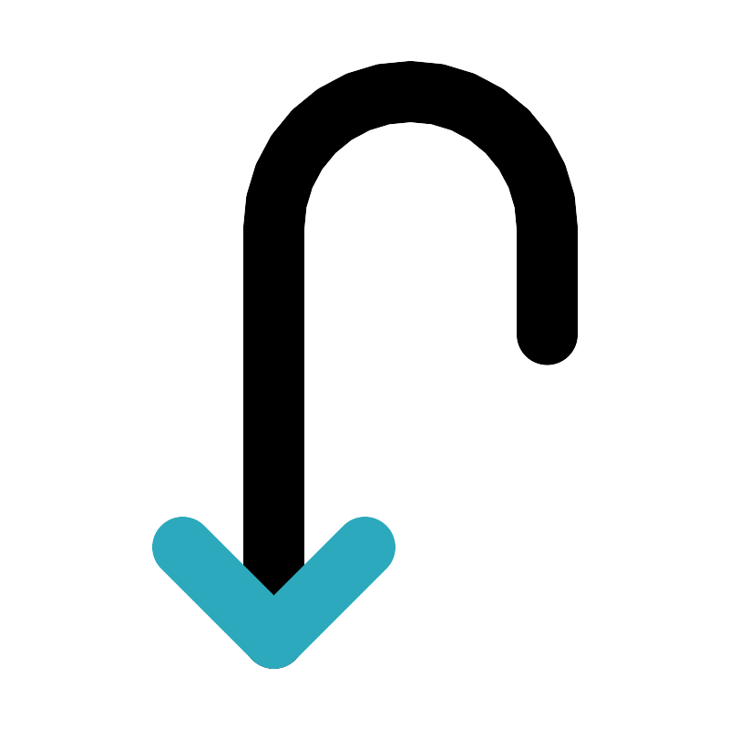 <svg fill="#000000" width="800px" height="800px" viewBox="0 0 24 24" id="turn-around-down-left-direction-2" data-name="Line Color" xmlns="http://www.w3.org/2000/svg" class="icon line-color"><path id="primary" d="M9,21V7.5A4.49,4.49,0,0,1,13.5,3h0A4.49,4.49,0,0,1,18,7.5V11" style="fill: none; stroke: rgb(0, 0, 0); stroke-linecap: round; stroke-linejoin: round; stroke-width: 2;"></path><polyline id="secondary" points="12 18 9 21 6 18" style="fill: none; stroke: rgb(44, 169, 188); stroke-linecap: round; stroke-linejoin: round; stroke-width: 2;"></polyline></svg>
