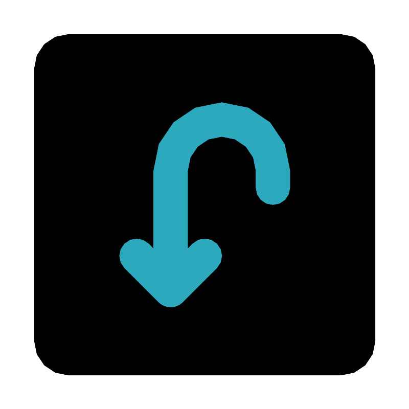 <svg fill="#000000" width="800px" height="800px" viewBox="0 0 24 24" id="turn-around-down-left-direction-square-2" data-name="Flat Color" xmlns="http://www.w3.org/2000/svg" class="icon flat-color"><rect id="primary" x="2" y="2" width="20" height="20" rx="2" style="fill: rgb(0, 0, 0);"></rect><path id="secondary" d="M13,6a4,4,0,0,0-4,4v4.59l-.29-.3a1,1,0,1,0-1.42,1.42l2,2a1,1,0,0,0,1.42,0l2-2a1,1,0,0,0-1.42-1.42l-.29.3V10a2,2,0,0,1,4,0v1a1,1,0,0,0,2,0V10A4,4,0,0,0,13,6Z" style="fill: rgb(44, 169, 188);"></path></svg>