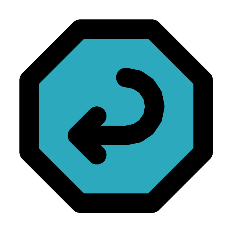 <svg fill="#000000" width="800px" height="800px" viewBox="0 0 24 24" id="turn-around-left-direction-octagon-2" data-name="Flat Line" xmlns="http://www.w3.org/2000/svg" class="icon flat-line"><polygon id="secondary" points="21 8.27 21 15.73 15.73 21 8.27 21 3 15.73 3 8.27 8.27 3 15.73 3 21 8.27" style="fill: rgb(44, 169, 188); stroke-width: 2;"></polygon><polyline id="primary" points="10 12 8 14 10 16" style="fill: none; stroke: rgb(0, 0, 0); stroke-linecap: round; stroke-linejoin: round; stroke-width: 2;"></polyline><path id="primary-2" data-name="primary" d="M13,8h0a3,3,0,0,1,3,3h0a3,3,0,0,1-3,3H8" style="fill: none; stroke: rgb(0, 0, 0); stroke-linecap: round; stroke-linejoin: round; stroke-width: 2;"></path><polygon id="primary-3" data-name="primary" points="3 15.73 3 8.27 8.27 3 15.73 3 21 8.27 21 15.73 15.73 21 8.27 21 3 15.73" style="fill: none; stroke: rgb(0, 0, 0); stroke-linecap: round; stroke-linejoin: round; stroke-width: 2;"></polygon></svg>