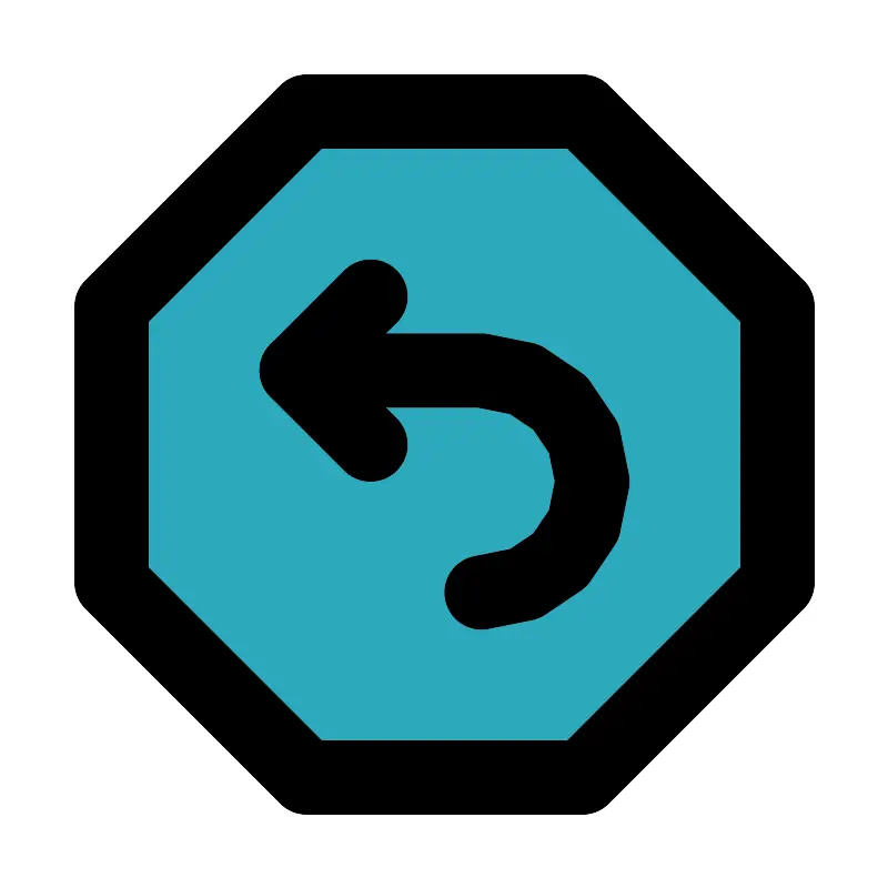 <svg fill="#000000" width="800px" height="800px" viewBox="0 0 24 24" id="turn-around-left-top-direction-octagon-2" data-name="Flat Line" xmlns="http://www.w3.org/2000/svg" class="icon flat-line"><polygon id="secondary" points="21 8.27 21 15.73 15.73 21 8.27 21 3 15.73 3 8.27 8.27 3 15.73 3 21 8.27" style="fill: rgb(44, 169, 188); stroke-width: 2;"></polygon><polyline id="primary" points="10 8 8 10 10 12" style="fill: none; stroke: rgb(0, 0, 0); stroke-linecap: round; stroke-linejoin: round; stroke-width: 2;"></polyline><path id="primary-2" data-name="primary" d="M8,10h5a3,3,0,0,1,3,3h0a3,3,0,0,1-3,3h0" style="fill: none; stroke: rgb(0, 0, 0); stroke-linecap: round; stroke-linejoin: round; stroke-width: 2;"></path><polygon id="primary-3" data-name="primary" points="8.27 3 15.73 3 21 8.27 21 15.73 15.73 21 8.27 21 3 15.73 3 8.27 8.27 3" style="fill: none; stroke: rgb(0, 0, 0); stroke-linecap: round; stroke-linejoin: round; stroke-width: 2;"></polygon></svg>