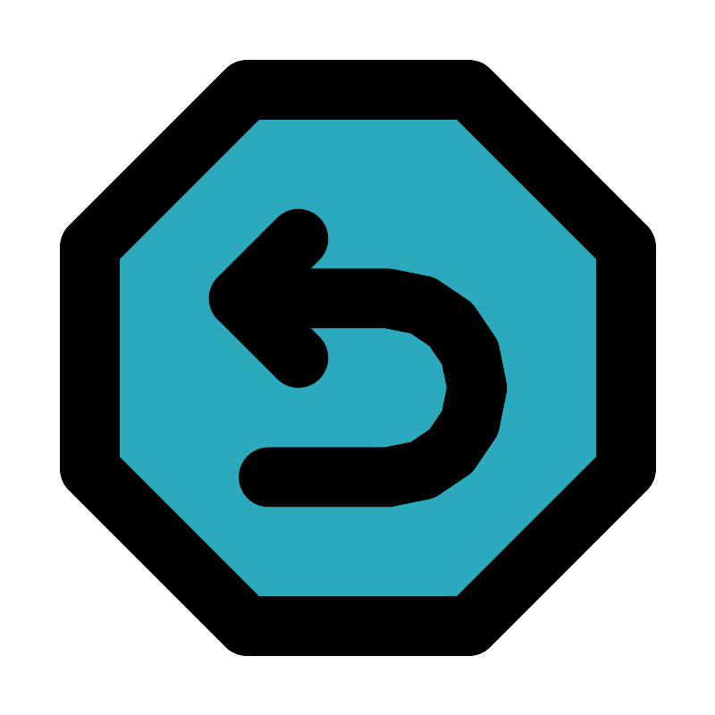 <svg fill="#000000" width="800px" height="800px" viewBox="0 0 24 24" id="turn-around-left-top-direction-octagon" data-name="Flat Line" xmlns="http://www.w3.org/2000/svg" class="icon flat-line"><polygon id="secondary" points="21 8.27 21 15.73 15.73 21 8.27 21 3 15.73 3 8.27 8.27 3 15.73 3 21 8.27" style="fill: rgb(44, 169, 188); stroke-width: 2;"></polygon><path id="primary" d="M9,16h4a3,3,0,0,0,3-3h0a3,3,0,0,0-3-3H8" style="fill: none; stroke: rgb(0, 0, 0); stroke-linecap: round; stroke-linejoin: round; stroke-width: 2;"></path><polyline id="primary-2" data-name="primary" points="10 8 8 10 10 12" style="fill: none; stroke: rgb(0, 0, 0); stroke-linecap: round; stroke-linejoin: round; stroke-width: 2;"></polyline><polygon id="primary-3" data-name="primary" points="8.27 3 15.73 3 21 8.27 21 15.73 15.73 21 8.27 21 3 15.73 3 8.27 8.27 3" style="fill: none; stroke: rgb(0, 0, 0); stroke-linecap: round; stroke-linejoin: round; stroke-width: 2;"></polygon></svg>