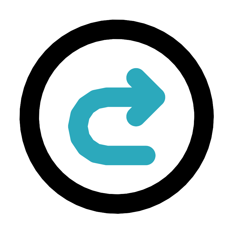 <svg fill="#000000" width="800px" height="800px" viewBox="0 0 24 24" id="turn-around-right-direction-circle" data-name="Line Color" xmlns="http://www.w3.org/2000/svg" class="icon line-color"><path id="secondary" d="M16,10H11a3,3,0,0,0-3,3H8a3,3,0,0,0,3,3h4" style="fill: none; stroke: rgb(44, 169, 188); stroke-linecap: round; stroke-linejoin: round; stroke-width: 2;"></path><polyline id="secondary-2" data-name="secondary" points="14 12 16 10 14 8" style="fill: none; stroke: rgb(44, 169, 188); stroke-linecap: round; stroke-linejoin: round; stroke-width: 2;"></polyline><circle id="primary" cx="12" cy="12" r="9" style="fill: none; stroke: rgb(0, 0, 0); stroke-linecap: round; stroke-linejoin: round; stroke-width: 2;"></circle></svg>