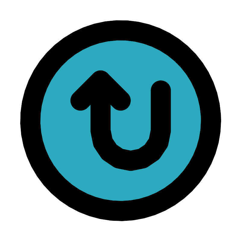 <svg fill="#000000" width="800px" height="800px" viewBox="0 0 24 24" id="turn-around-up-direction-circle" data-name="Flat Line" xmlns="http://www.w3.org/2000/svg" class="icon flat-line"><circle id="secondary" cx="12" cy="12" r="9" style="fill: rgb(44, 169, 188); stroke-width: 2;"></circle><path id="primary" d="M10,8v5a3,3,0,0,0,3,3h0a3,3,0,0,0,3-3V9" style="fill: none; stroke: rgb(0, 0, 0); stroke-linecap: round; stroke-linejoin: round; stroke-width: 2;"></path><polyline id="primary-2" data-name="primary" points="12 10 10 8 8 10" style="fill: none; stroke: rgb(0, 0, 0); stroke-linecap: round; stroke-linejoin: round; stroke-width: 2;"></polyline><circle id="primary-3" data-name="primary" cx="12" cy="12" r="9" style="fill: none; stroke: rgb(0, 0, 0); stroke-linecap: round; stroke-linejoin: round; stroke-width: 2;"></circle></svg>