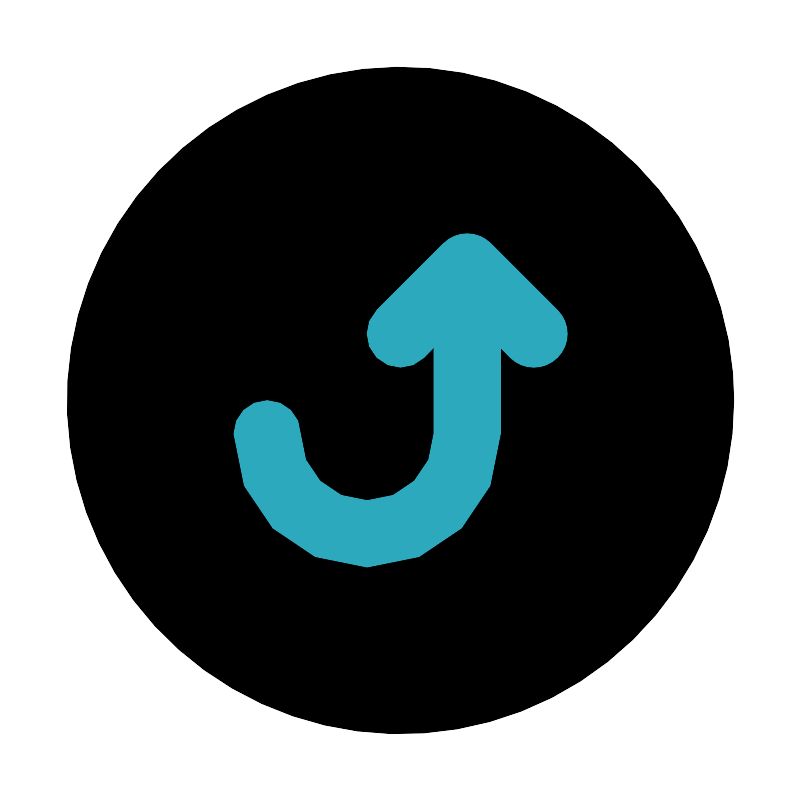 <svg fill="#000000" width="800px" height="800px" viewBox="0 0 24 24" id="turn-around-up-right-direction-circle-2" data-name="Flat Color" xmlns="http://www.w3.org/2000/svg" class="icon flat-color"><circle id="primary" cx="12" cy="12" r="10" style="fill: rgb(0, 0, 0);"></circle><path id="secondary" d="M16.71,9.29l-2-2a1,1,0,0,0-1.42,0l-2,2a1,1,0,0,0,1.42,1.42l.29-.3V13a2,2,0,0,1-4,0,1,1,0,0,0-2,0,4,4,0,0,0,8,0V10.41l.29.3a1,1,0,0,0,1.42,0A1,1,0,0,0,16.71,9.29Z" style="fill: rgb(44, 169, 188);"></path></svg>