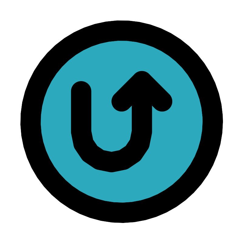 <svg fill="#000000" width="800px" height="800px" viewBox="0 0 24 24" id="turn-around-up-right-direction-circle" data-name="Flat Line" xmlns="http://www.w3.org/2000/svg" class="icon flat-line"><circle id="secondary" cx="12" cy="12" r="9" style="fill: rgb(44, 169, 188); stroke-width: 2;"></circle><path id="primary" d="M8,9v4a3,3,0,0,0,3,3h0a3,3,0,0,0,3-3V8" style="fill: none; stroke: rgb(0, 0, 0); stroke-linecap: round; stroke-linejoin: round; stroke-width: 2;"></path><polyline id="primary-2" data-name="primary" points="16 10 14 8 12 10" style="fill: none; stroke: rgb(0, 0, 0); stroke-linecap: round; stroke-linejoin: round; stroke-width: 2;"></polyline><circle id="primary-3" data-name="primary" cx="12" cy="12" r="9" style="fill: none; stroke: rgb(0, 0, 0); stroke-linecap: round; stroke-linejoin: round; stroke-width: 2;"></circle></svg>