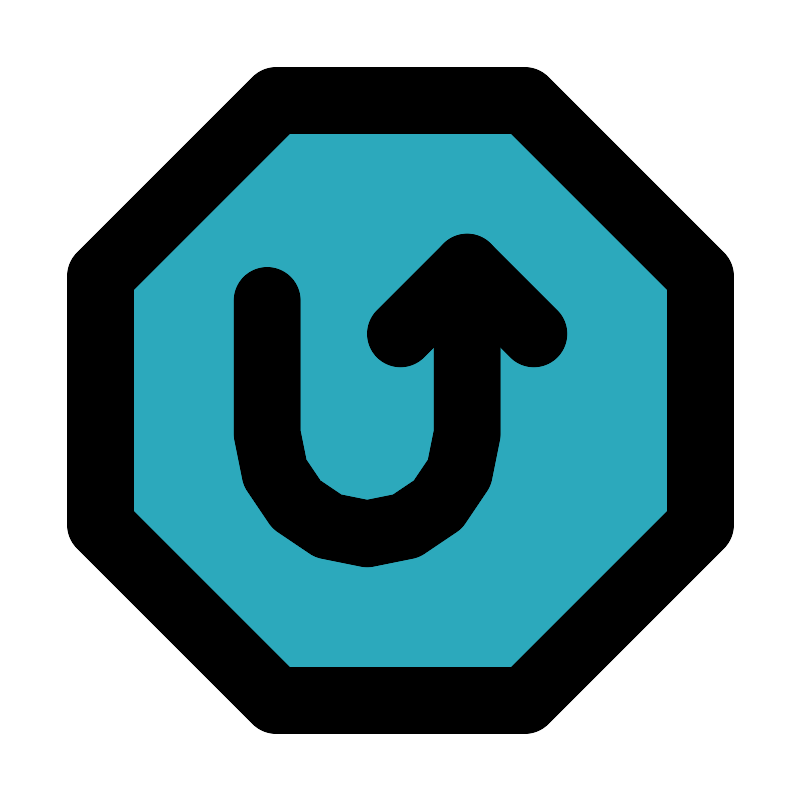<svg fill="#000000" width="800px" height="800px" viewBox="0 0 24 24" id="turn-around-up-right-direction-octagon" data-name="Flat Line" xmlns="http://www.w3.org/2000/svg" class="icon flat-line"><polygon id="secondary" points="21 8.27 21 15.73 15.73 21 8.27 21 3 15.73 3 8.27 8.27 3 15.73 3 21 8.27" style="fill: rgb(44, 169, 188); stroke-width: 2;"></polygon><path id="primary" d="M8,9v4a3,3,0,0,0,3,3h0a3,3,0,0,0,3-3V8" style="fill: none; stroke: rgb(0, 0, 0); stroke-linecap: round; stroke-linejoin: round; stroke-width: 2;"></path><polyline id="primary-2" data-name="primary" points="16 10 14 8 12 10" style="fill: none; stroke: rgb(0, 0, 0); stroke-linecap: round; stroke-linejoin: round; stroke-width: 2;"></polyline><polygon id="primary-3" data-name="primary" points="21 8.27 21 15.73 15.73 21 8.27 21 3 15.73 3 8.27 8.27 3 15.73 3 21 8.27" style="fill: none; stroke: rgb(0, 0, 0); stroke-linecap: round; stroke-linejoin: round; stroke-width: 2;"></polygon></svg>
