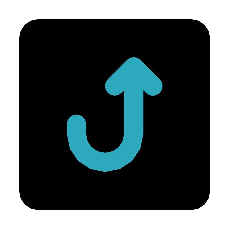 <svg fill="#000000" width="800px" height="800px" viewBox="0 0 24 24" id="turn-around-up-right-direction-square-2" data-name="Flat Color" xmlns="http://www.w3.org/2000/svg" class="icon flat-color"><rect id="primary" x="2" y="2" width="20" height="20" rx="2" style="fill: rgb(0, 0, 0);"></rect><path id="secondary" d="M16.71,8.29l-2-2a1,1,0,0,0-1.42,0l-2,2a1,1,0,0,0,1.42,1.42l.29-.3V14a2,2,0,0,1-4,0V13a1,1,0,0,0-2,0v1a4,4,0,0,0,8,0V9.41l.29.3a1,1,0,0,0,1.42,0A1,1,0,0,0,16.71,8.29Z" style="fill: rgb(44, 169, 188);"></path></svg>