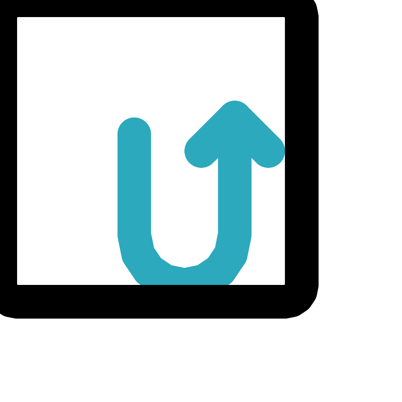 <svg fill="#000000" width="800px" height="800px" viewBox="0 0 24 24" id="turn-around-up-right-direction-square" data-name="Line Color" xmlns="http://www.w3.org/2000/svg" class="icon line-color"><path id="secondary" d="M14,7v7a3,3,0,0,1-3,3h0a3,3,0,0,1-3-3V8" style="fill: none; stroke: rgb(44, 169, 188); stroke-linecap: round; stroke-linejoin: round; stroke-width: 2;"></path><polyline id="secondary-2" data-name="secondary" points="12 9 14 7 16 9" style="fill: none; stroke: rgb(44, 169, 188); stroke-linecap: round; stroke-linejoin: round; stroke-width: 2;"></polyline><rect id="primary" x="3" y="3" width="18" height="18" rx="1" transform="translate(24 24) rotate(180)" style="fill: none; stroke: rgb(0, 0, 0); stroke-linecap: round; stroke-linejoin: round; stroke-width: 2;"></rect></svg>
