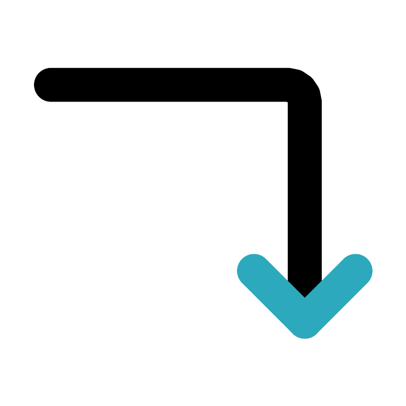 <svg fill="#000000" width="800px" height="800px" viewBox="0 0 24 24" id="turn-down-direction" data-name="Line Color" xmlns="http://www.w3.org/2000/svg" class="icon line-color"><path id="primary" d="M3,5H17a1,1,0,0,1,1,1V19" style="fill: none; stroke: rgb(0, 0, 0); stroke-linecap: round; stroke-linejoin: round; stroke-width: 2;"></path><polyline id="secondary" points="15 16 18 19 21 16" style="fill: none; stroke: rgb(44, 169, 188); stroke-linecap: round; stroke-linejoin: round; stroke-width: 2;"></polyline></svg>