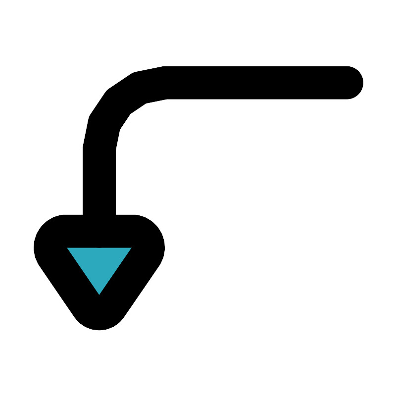 <svg fill="#000000" width="800px" height="800px" viewBox="0 0 24 24" id="turn-down-right-direction-round-2" data-name="Flat Line" xmlns="http://www.w3.org/2000/svg" class="icon flat-line"><path id="secondary" d="M6.69,18.62,8.83,15.5A1,1,0,0,0,8.14,14H3.86a1,1,0,0,0-.69,1.5l2.14,3.13A.82.82,0,0,0,6.69,18.62Z" style="fill: rgb(44, 169, 188); stroke-width: 2;"></path><path id="primary" d="M6,14V9a4,4,0,0,1,4-4H21" style="fill: none; stroke: rgb(0, 0, 0); stroke-linecap: round; stroke-linejoin: round; stroke-width: 2;"></path><path id="primary-2" data-name="primary" d="M6.69,18.62,8.83,15.5A1,1,0,0,0,8.14,14H3.86a1,1,0,0,0-.69,1.5l2.14,3.13A.82.82,0,0,0,6.69,18.62Z" style="fill: none; stroke: rgb(0, 0, 0); stroke-linecap: round; stroke-linejoin: round; stroke-width: 2;"></path></svg>