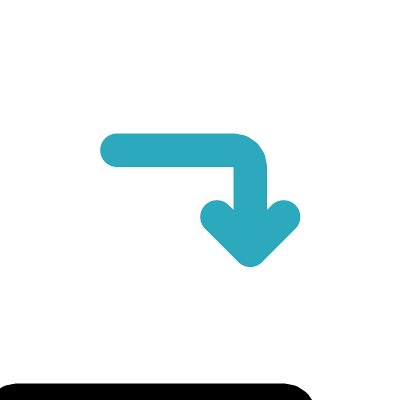<svg fill="#000000" width="800px" height="800px" viewBox="0 0 24 24" id="turn-down-right-direction-square" data-name="Line Color" xmlns="http://www.w3.org/2000/svg" class="icon line-color"><path id="secondary" d="M15,15V10a1,1,0,0,0-1-1H7" style="fill: none; stroke: rgb(44, 169, 188); stroke-linecap: round; stroke-linejoin: round; stroke-width: 2;"></path><polyline id="secondary-2" data-name="secondary" points="17 13 15 15 13 13" style="fill: none; stroke: rgb(44, 169, 188); stroke-linecap: round; stroke-linejoin: round; stroke-width: 2;"></polyline><rect id="primary" x="3" y="3" width="18" height="18" rx="1" transform="translate(24) rotate(90)" style="fill: none; stroke: rgb(0, 0, 0); stroke-linecap: round; stroke-linejoin: round; stroke-width: 2;"></rect></svg>