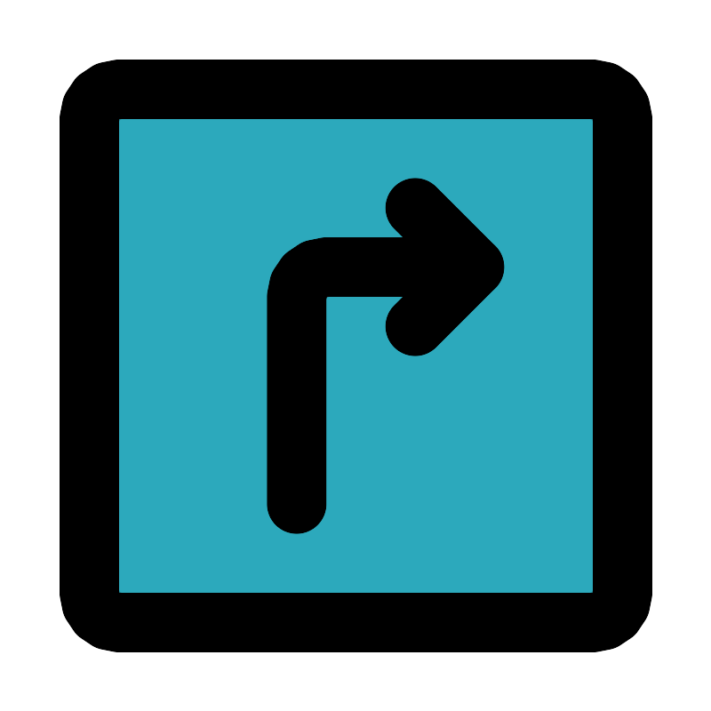 Направление поворота направо в квадрате