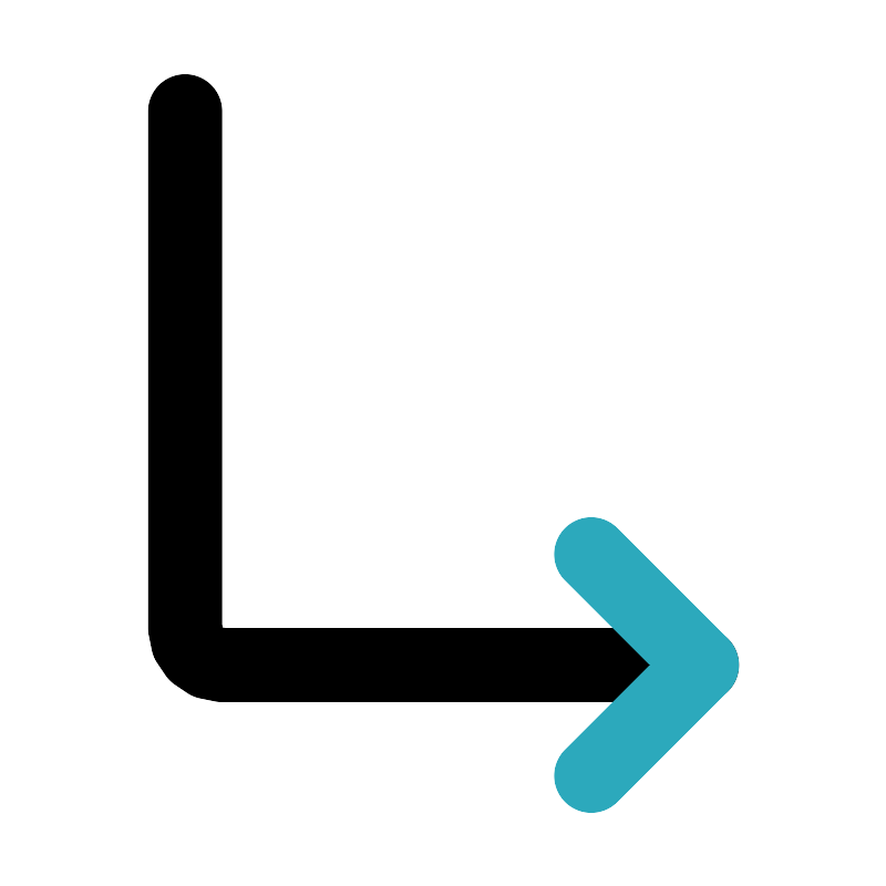 <svg fill="#000000" width="800px" height="800px" viewBox="0 0 24 24" id="turn-right-down-direction" data-name="Line Color" xmlns="http://www.w3.org/2000/svg" class="icon line-color"><path id="primary" d="M19,18H6a1,1,0,0,1-1-1V3" style="fill: none; stroke: rgb(0, 0, 0); stroke-linecap: round; stroke-linejoin: round; stroke-width: 2;"></path><polyline id="secondary" points="16 21 19 18 16 15" style="fill: none; stroke: rgb(44, 169, 188); stroke-linecap: round; stroke-linejoin: round; stroke-width: 2;"></polyline></svg>