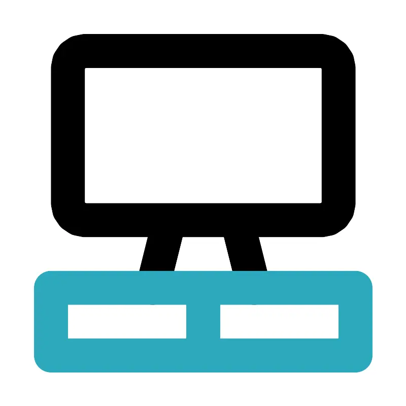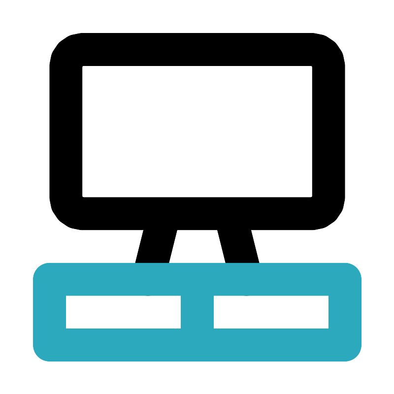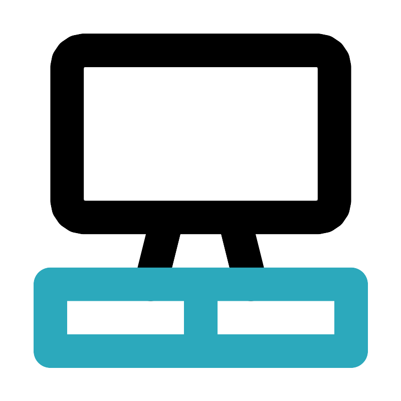<svg fill="#000000" width="800px" height="800px" viewBox="0 0 24 24" id="tv-stand-2" data-name="Line Color" xmlns="http://www.w3.org/2000/svg" class="icon line-color"><path id="primary" d="M19,13H5a1,1,0,0,1-1-1V4A1,1,0,0,1,5,3H19a1,1,0,0,1,1,1v8A1,1,0,0,1,19,13Zm-5,0,1,4M9,17l1-4" style="fill: none; stroke: rgb(0, 0, 0); stroke-linecap: round; stroke-linejoin: round; stroke-width: 2;"></path><path id="secondary" d="M3,21H21V17H3Zm0,0h9V17H3Z" style="fill: none; stroke: rgb(44, 169, 188); stroke-linecap: round; stroke-linejoin: round; stroke-width: 2;"></path></svg>