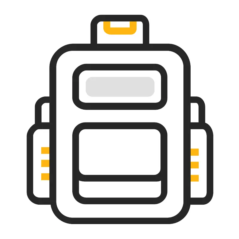 <svg width="800px" height="800px" viewBox="0 0 1024 1024" class="icon" version="1.1" xmlns="http://www.w3.org/2000/svg"><path d="M176.631481 630.321212h50.170381v27.644904h-50.170381zM176.631481 684.587134h50.170381v29.692675h-50.170381zM176.631481 741.924712h50.170381v28.66879h-50.170381zM800.177644 636.464524h50.170381v29.692674h-50.170381zM800.177644 692.778217h50.170381v27.644904h-50.170381zM800.177644 749.09191h50.170381v27.644903h-50.170381zM558.803846 147.047339h-84.087606c-15.455549 0-31.874574-10.62793-31.874574-26.086551V76.399251h28.668789v40.955413h83.958596v-40.955413h28.66879v44.561537c0 15.458621-9.878446 26.08655-25.333995 26.086551z" fill="#FFB612" /><path d="M877.992929 539.195418h-27.644904v-81.883181c0-7.726239-3.522166-17.433695-11.251476-17.433695h-38.918905v-26.621019h38.918905c23.184859 0 38.89638 20.869855 38.89638 44.054714v81.883181z" fill="#262626" /><path d="M867.126434 876.05369h-66.94879v-29.692674h66.94879c11.393796 0 18.033692-9.476059 18.033692-24.66847v-238.247876c0-15.191387-6.639896-30.937719-18.033692-30.937719h-66.94879v-28.668789h66.94879c27.046955 0 45.678596 28.696434 45.678596 59.606508v238.2489c0 30.910074-18.631641 54.36012-45.678596 54.36012z" fill="#262626" /><path d="M719.972611 186.978866h-81.568848V106.94687c0-23.184859-14.371254-43.857104-37.556114-43.857104H432.672437c-23.184859 0-45.120578 20.673269-45.120579 43.857104v80.03302H313.547475c-54.094933 0-102.103892 48.063225-102.103893 102.157135v124.121522h-17.020045c-23.184859 0-45.436959 20.869855-45.436959 44.054714v72.433743c-13.310509 6.911226-34.812101 28.354456-34.812102 53.697666v238.2489c0 30.910074 26.742861 54.361144 55.722911 54.361144h46.666646c6.836482 48.12261 47.65879 82.934711 96.983442 82.934711h406.424112c54.094933 0 95.563313-41.157118 95.563313-95.252052V289.137025c0.001024-54.094933-41.467356-102.158158-95.562289-102.158159zM415.196762 106.94687c0-7.726239 9.746364-16.2122 17.475675-16.2122h168.175212c7.72931 0 10.935095 8.486985 10.935095 16.2122v80.03302h-196.585982V106.94687zM194.423537 439.878542h17.020045v83.958596h-34.812101v-66.524901c0-7.725215 10.062745-17.433695 17.792056-17.433695z m-53.628042 381.815028V583.44467c0-15.191387 14.205385-30.937719 25.598157-30.937719h45.04993v293.855088h-41.546195c-13.52143-0.001024-29.101893-9.209848-29.101892-24.668469z m645.047755 40.601149c0 38.700818-31.37287 70.073688-70.073688 70.073688H310.186059c-38.700818 0-70.073688-31.37287-70.073688-70.073688V286.745229c0-38.700818 31.37287-70.073688 70.073688-70.073688H715.770586c38.700818 0 70.073688 31.37287 70.073687 70.073688v575.54949z" fill="#262626" /><path d="M716.219047 579.895884c0-30.960244-25.098501-56.058745-56.058745-56.058746H365.795319c-30.960244 0-56.058745 25.098501-56.058745 56.058746v238.05129c0 30.960244 25.098501 56.058745 56.058745 56.058745h294.364983c30.960244 0 56.058745-25.098501 56.058745-56.058745V579.895884z m-52.305181 266.465132H369.60622c-15.455549 0-32.224743-9.209848-32.224743-24.66847V772.063801c15.35828 4.793831 22.009439 4.673013 32.224743 4.673012h294.307646c10.215304 0 17.493081 0.120818 25.684163-4.673012v49.628745c0 15.459645-10.228614 24.668469-25.684163 24.66847z m23.636392-125.297967c0 15.480122-12.548739 28.028861-28.02886 28.028861H365.411362c-15.480122 0-28.028861-12.548739-28.028861-28.028861V580.535812c0-15.480122 12.548739-28.028861 28.028861-28.028861h294.110036c15.480122 0 28.028861 12.548739 28.02886 28.028861v140.527237zM663.913866 272.985234H369.60622c-30.910074 0-59.869647 27.284496-59.869646 58.195594v87.591342c0 28.98005 28.959573 50.799047 59.869646 50.799046h294.307646c30.910074 0 52.305182-21.818996 52.305181-50.799046v-87.591342c0-30.910074-21.395108-58.195594-52.305181-58.195594z m25.684163 145.786936c0 13.52143-10.228614 21.106372-25.684163 21.106372H369.60622c-15.455549 0-32.224743-7.584942-32.224743-21.106372v-87.591342c0-15.458621 16.770218-30.55069 32.224743-30.550691h294.307646c15.455549 0 25.684163 15.09207 25.684163 30.550691v87.591342z" fill="#262626" /><path d="M516.760043 653.517334m-56.058746 0a56.058745 56.058745 0 1 0 112.117491 0 56.058745 56.058745 0 1 0-112.117491 0Z" fill="#E0E0E0" /><path d="M660.92924 385.228662c0 15.480122-12.548739 28.028861-28.028861 28.028861H395.104036c-15.480122 0-28.028861-12.548739-28.02886-28.028861V357.328811c0-15.480122 12.548739-28.028861 28.02886-28.028861h237.796343c15.480122 0 28.028861 12.548739 28.028861 28.028861v27.899851z" fill="#E0E0E0" /></svg>