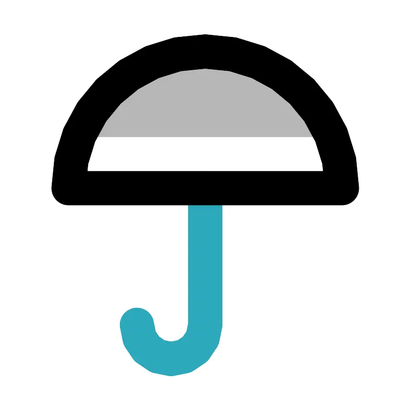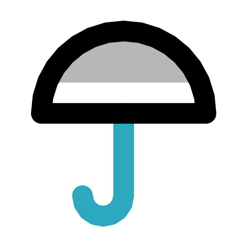 <svg width="800px" height="800px" viewBox="0 0 24 24" id="umbrella" xmlns="http://www.w3.org/2000/svg" class="icon multi-color"><title style="stroke-width: 2;">umbrella</title><path id="tertiary-fill" d="M19.42,8H4.58A8,8,0,0,1,19.42,8Z" style="fill: #b7b7b7; stroke-width: 2;"></path><path id="secondary-stroke" d="M12,11v8a2,2,0,0,1-2,2h0a2,2,0,0,1-2-2H8" style="fill: none; stroke: rgb(44, 169, 188); stroke-linecap: round; stroke-linejoin: round; stroke-width: 2;"></path><path id="primary-stroke" d="M20,11H4a8,8,0,0,1,16,0Zm0,0H4" style="fill: none; stroke: rgb(0, 0, 0); stroke-linecap: round; stroke-linejoin: round; stroke-width: 2;"></path></svg>