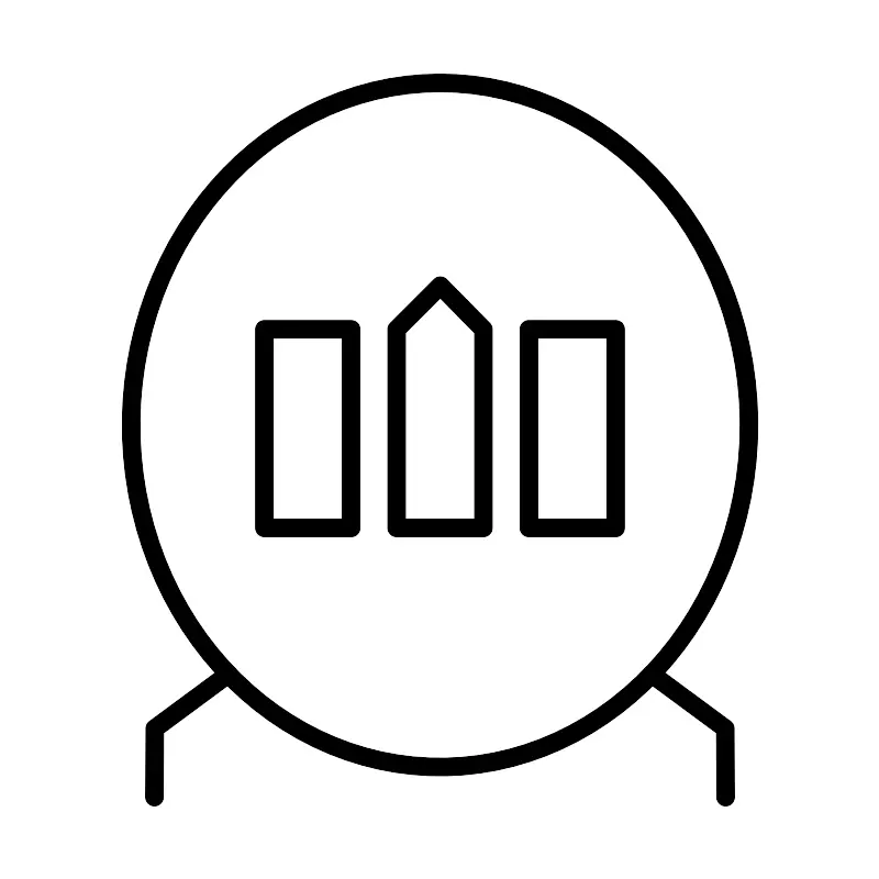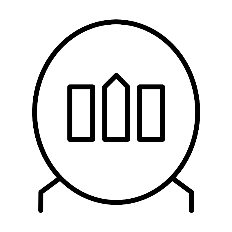 <svg width="800px" height="800px" viewBox="0 0 48 48" xmlns="http://www.w3.org/2000/svg"><defs><style>.a{fill:none;stroke:#000000;stroke-linecap:round;stroke-linejoin:round;}</style></defs><ellipse class="a" cx="24" cy="23.1782" rx="16.8706" ry="18.6782"/><path class="a" d="M12.4436,36.7807l-4.02,2.97L8.4055,43.5"/><path class="a" d="M35.5564,36.7807l4.02,2.97L39.5945,43.5"/><rect class="a" x="14.4091" y="17.9531" width="4.737" height="10.8454"/><rect class="a" x="28.8527" y="17.9531" width="4.737" height="10.8454"/><path class="a" d="M26.3691,17.9531l-2.3534-2.3848-2.3848,2.3848V28.7985h4.7382Z"/></svg>
