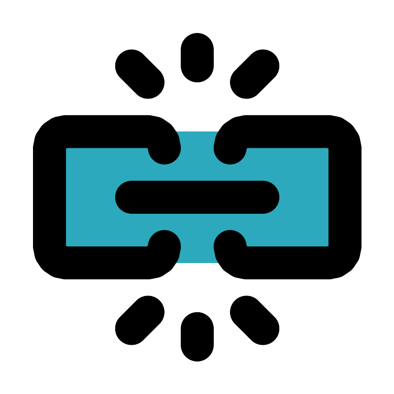 <svg fill="#000000" width="800px" height="800px" viewBox="0 0 24 24" id="unlink-alt-4" data-name="Flat Line" xmlns="http://www.w3.org/2000/svg" class="icon flat-line"><rect id="secondary" x="3" y="8" width="18" height="8" rx="1" style="fill: rgb(44, 169, 188); stroke-width: 2;"></rect><path id="primary" d="M8,12h8M12,4V3M9,5,8,4m7,1,1-1M12,20v1M9,19,8,20m7-1,1,1" style="fill: none; stroke: rgb(0, 0, 0); stroke-linecap: round; stroke-linejoin: round; stroke-width: 2;"></path><path id="primary-2" data-name="primary" d="M10,9A1,1,0,0,0,9,8H4A1,1,0,0,0,3,9v6a1,1,0,0,0,1,1H9a1,1,0,0,0,1-1" style="fill: none; stroke: rgb(0, 0, 0); stroke-linecap: round; stroke-linejoin: round; stroke-width: 2;"></path><path id="primary-3" data-name="primary" d="M14,15a1,1,0,0,0,1,1h5a1,1,0,0,0,1-1V9a1,1,0,0,0-1-1H15a1,1,0,0,0-1,1" style="fill: none; stroke: rgb(0, 0, 0); stroke-linecap: round; stroke-linejoin: round; stroke-width: 2;"></path></svg>