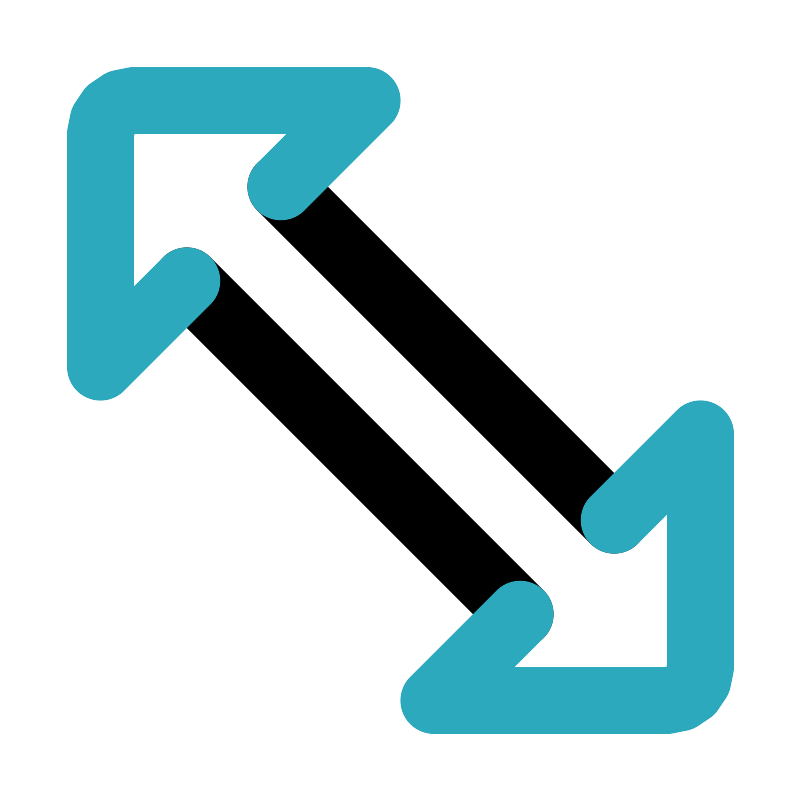 <svg fill="#000000" width="800px" height="800px" viewBox="0 0 24 24" id="up-left-down-right-sign" data-name="Line Color" xmlns="http://www.w3.org/2000/svg" class="icon line-color"><line id="primary" x1="15.59" y1="18.41" x2="5.59" y2="8.41" style="fill: none; stroke: rgb(0, 0, 0); stroke-linecap: round; stroke-linejoin: round; stroke-width: 2;"></line><line id="primary-2" data-name="primary" x1="8.41" y1="5.59" x2="18.41" y2="15.59" style="fill: none; stroke: rgb(0, 0, 0); stroke-linecap: round; stroke-linejoin: round; stroke-width: 2;"></line><path id="secondary" d="M5.59,8.41,3,11V4A1,1,0,0,1,4,3h7L8.41,5.59" style="fill: none; stroke: rgb(44, 169, 188); stroke-linecap: round; stroke-linejoin: round; stroke-width: 2;"></path><path id="secondary-2" data-name="secondary" d="M18.41,15.59,21,13v7a1,1,0,0,1-1,1H13l2.59-2.59" style="fill: none; stroke: rgb(44, 169, 188); stroke-linecap: round; stroke-linejoin: round; stroke-width: 2;"></path></svg>