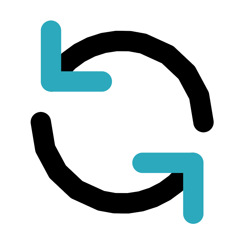 <svg fill="#000000" width="800px" height="800px" viewBox="0 0 24 24" id="update-alt" data-name="Line Color" xmlns="http://www.w3.org/2000/svg" class="icon line-color"><path id="primary" d="M5.07,8A8,8,0,0,1,20,12" style="fill: none; stroke: rgb(0, 0, 0); stroke-linecap: round; stroke-linejoin: round; stroke-width: 2;"></path><path id="primary-2" data-name="primary" d="M18.93,16A8,8,0,0,1,4,12" style="fill: none; stroke: rgb(0, 0, 0); stroke-linecap: round; stroke-linejoin: round; stroke-width: 2;"></path><polyline id="secondary" points="5 3 5 8 10 8" style="fill: none; stroke: rgb(44, 169, 188); stroke-linecap: round; stroke-linejoin: round; stroke-width: 2;"></polyline><polyline id="secondary-2" data-name="secondary" points="19 21 19 16 14 16" style="fill: none; stroke: rgb(44, 169, 188); stroke-linecap: round; stroke-linejoin: round; stroke-width: 2;"></polyline></svg>