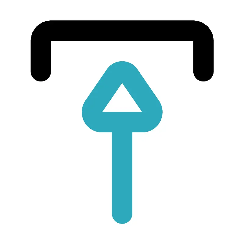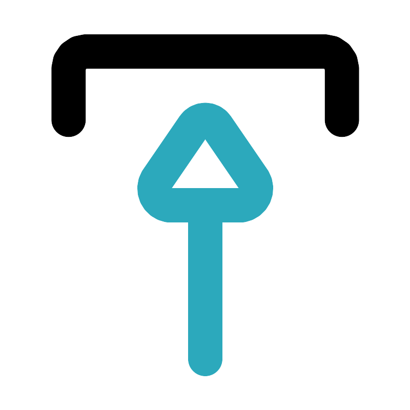 <svg fill="#000000" width="800px" height="800px" viewBox="0 0 24 24" id="upload-10" data-name="Line Color" xmlns="http://www.w3.org/2000/svg" class="icon line-color"><path id="secondary" d="M12,21V12m-.69-4.62L9.17,10.5A1,1,0,0,0,9.86,12h4.28a1,1,0,0,0,.69-1.5L12.69,7.38A.82.82,0,0,0,11.31,7.38Z" style="fill: none; stroke: rgb(44, 169, 188); stroke-linecap: round; stroke-linejoin: round; stroke-width: 2;"></path><path id="primary" d="M20,7V4a1,1,0,0,0-1-1H5A1,1,0,0,0,4,4V7" style="fill: none; stroke: rgb(0, 0, 0); stroke-linecap: round; stroke-linejoin: round; stroke-width: 2;"></path></svg>