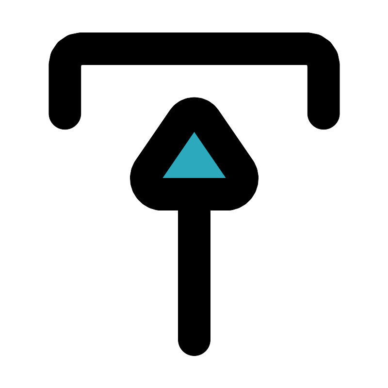 <svg fill="#000000" width="800px" height="800px" viewBox="0 0 24 24" id="upload-10" data-name="Flat Line" xmlns="http://www.w3.org/2000/svg" class="icon flat-line"><path id="secondary" d="M11.31,7.38,9.17,10.5A1,1,0,0,0,9.86,12h4.28a1,1,0,0,0,.69-1.5L12.69,7.38A.82.82,0,0,0,11.31,7.38Z" style="fill: rgb(44, 169, 188); stroke-width: 2;"></path><path id="primary" d="M12,21V12m-.69-4.62L9.17,10.5A1,1,0,0,0,9.86,12h4.28a1,1,0,0,0,.69-1.5L12.69,7.38A.82.82,0,0,0,11.31,7.38Z" style="fill: none; stroke: rgb(0, 0, 0); stroke-linecap: round; stroke-linejoin: round; stroke-width: 2;"></path><path id="primary-2" data-name="primary" d="M20,7V4a1,1,0,0,0-1-1H5A1,1,0,0,0,4,4V7" style="fill: none; stroke: rgb(0, 0, 0); stroke-linecap: round; stroke-linejoin: round; stroke-width: 2;"></path></svg>