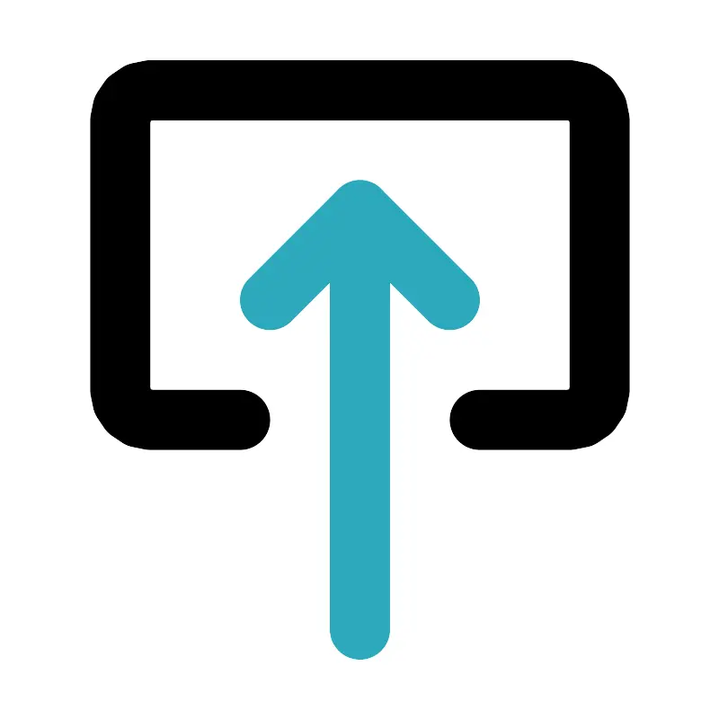 <svg fill="#000000" width="800px" height="800px" viewBox="0 0 24 24" id="upload-4" data-name="Line Color" xmlns="http://www.w3.org/2000/svg" class="icon line-color"><polyline id="secondary" points="9 10 12 7 15 10" style="fill: none; stroke: rgb(44, 169, 188); stroke-linecap: round; stroke-linejoin: round; stroke-width: 2;"></polyline><line id="secondary-2" data-name="secondary" x1="12" y1="7" x2="12" y2="21" style="fill: none; stroke: rgb(44, 169, 188); stroke-linecap: round; stroke-linejoin: round; stroke-width: 2;"></line><path id="primary" d="M8,14H5a1,1,0,0,1-1-1V4A1,1,0,0,1,5,3H19a1,1,0,0,1,1,1v9a1,1,0,0,1-1,1H16" style="fill: none; stroke: rgb(0, 0, 0); stroke-linecap: round; stroke-linejoin: round; stroke-width: 2;"></path></svg>