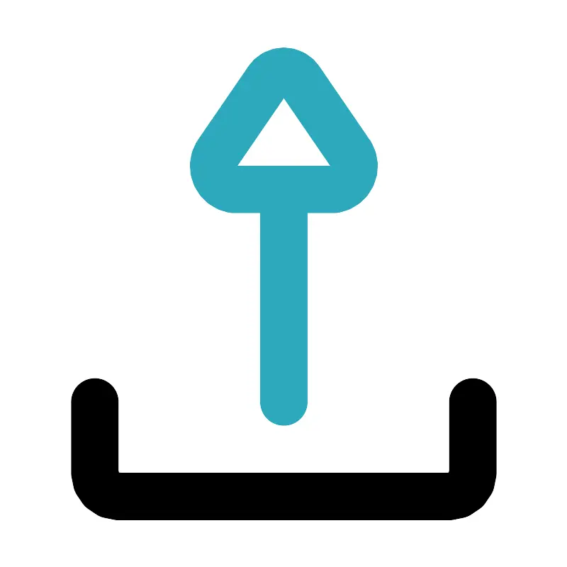 <svg fill="#000000" width="800px" height="800px" viewBox="0 0 24 24" id="upload-9" data-name="Line Color" xmlns="http://www.w3.org/2000/svg" class="icon line-color"><path id="secondary" d="M12,17V8m-.69-4.62L9.17,6.5A1,1,0,0,0,9.86,8h4.28a1,1,0,0,0,.69-1.5L12.69,3.38A.82.82,0,0,0,11.31,3.38Z" style="fill: none; stroke: rgb(44, 169, 188); stroke-linecap: round; stroke-linejoin: round; stroke-width: 2;"></path><path id="primary" d="M4,17v3a1,1,0,0,0,1,1H19a1,1,0,0,0,1-1V17" style="fill: none; stroke: rgb(0, 0, 0); stroke-linecap: round; stroke-linejoin: round; stroke-width: 2;"></path></svg>