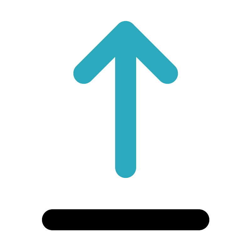 <svg fill="#000000" width="800px" height="800px" viewBox="0 0 24 24" id="upload-alt" data-name="Line Color" xmlns="http://www.w3.org/2000/svg" class="icon line-color"><polyline id="secondary" points="16 7 12 3 8 7" style="fill: none; stroke: rgb(44, 169, 188); stroke-linecap: round; stroke-linejoin: round; stroke-width: 2;"></polyline><line id="secondary-2" data-name="secondary" x1="12" y1="16" x2="12" y2="3" style="fill: none; stroke: rgb(44, 169, 188); stroke-linecap: round; stroke-linejoin: round; stroke-width: 2;"></line><line id="primary" x1="5" y1="21" x2="19" y2="21" style="fill: none; stroke: rgb(0, 0, 0); stroke-linecap: round; stroke-linejoin: round; stroke-width: 2;"></line></svg>