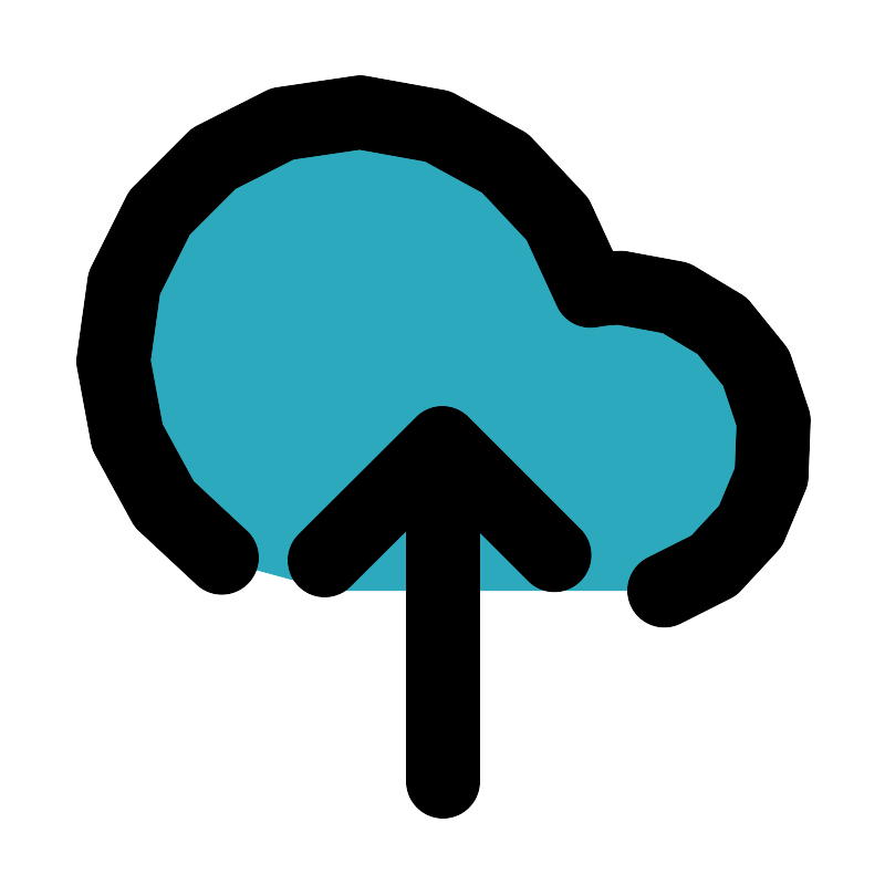 <svg fill="#000000" width="800px" height="800px" viewBox="0 0 24 24" id="upload-alt-2" data-name="Flat Line" xmlns="http://www.w3.org/2000/svg" class="icon flat-line"><path id="secondary" d="M17,8a4.17,4.17,0,0,0-1.13.18A6.5,6.5,0,1,0,9,16v0h8a4,4,0,0,0,0-8Z" style="fill: rgb(44, 169, 188); stroke-width: 2;"></path><line id="primary" x1="12" y1="21.18" x2="12" y2="12.18" style="fill: none; stroke: rgb(0, 0, 0); stroke-linecap: round; stroke-linejoin: round; stroke-width: 2;"></line><polyline id="primary-2" data-name="primary" points="15.02 15.04 11.98 12 8.79 15.18" style="fill: none; stroke: rgb(0, 0, 0); stroke-linecap: round; stroke-linejoin: round; stroke-width: 2;"></polyline><path id="primary-3" data-name="primary" d="M6,15.11A6.59,6.59,0,1,1,16,7.87a4.58,4.58,0,0,1,.83-.08A4.19,4.19,0,0,1,18,16" style="fill: none; stroke: rgb(0, 0, 0); stroke-linecap: round; stroke-linejoin: round; stroke-width: 2;"></path></svg>