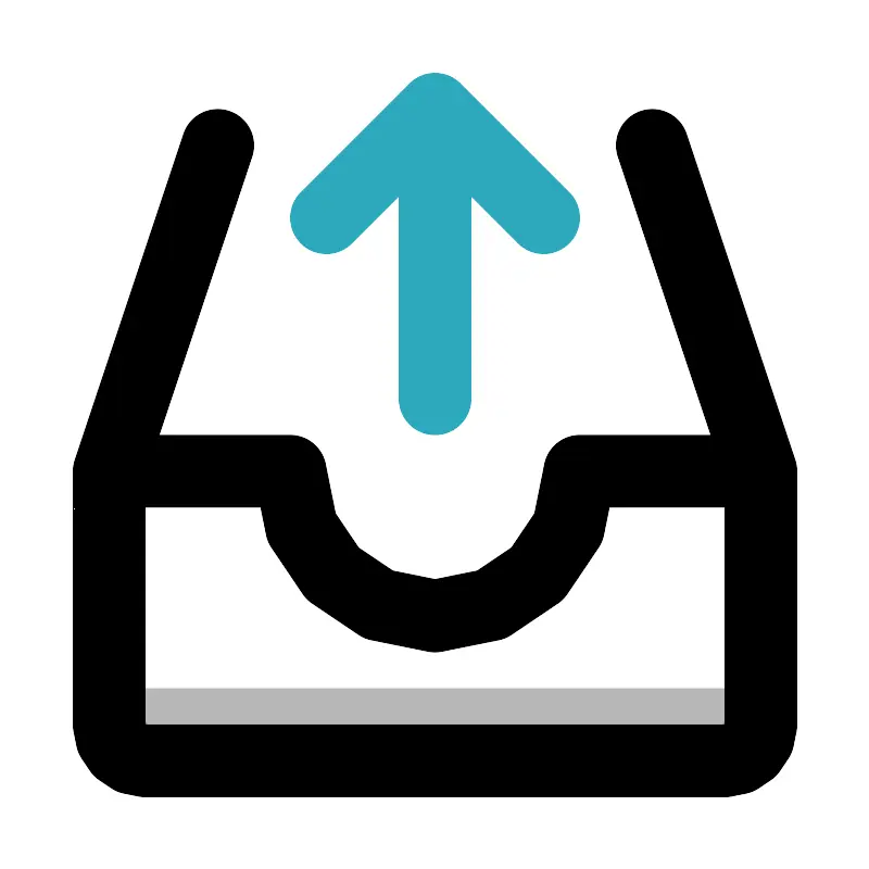 <svg width="800px" height="800px" viewBox="0 0 24 24" id="upload-alt-3" xmlns="http://www.w3.org/2000/svg" class="icon multi-color"><path id="tertiary-fill" d="M3,19H21a0,0,0,0,1,0,0v1a1,1,0,0,1-1,1H4a1,1,0,0,1-1-1V19A0,0,0,0,1,3,19Z" style="fill: #b7b7b7; stroke-width: 2;"></path><path id="primary-stroke" d="M21,13v7a1,1,0,0,1-1,1H4a1,1,0,0,1-1-1V13H8a4,4,0,0,0,8,0Zm0,0L18,4M3,13,6,4" style="fill: none; stroke: rgb(0, 0, 0); stroke-linecap: round; stroke-linejoin: round; stroke-width: 2;"></path><path id="secondary-stroke" d="M12,11V3m3,3L12,3,9,6" style="fill: none; stroke: rgb(44, 169, 188); stroke-linecap: round; stroke-linejoin: round; stroke-width: 2;"></path></svg>