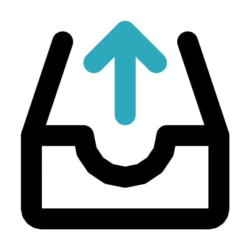 <svg fill="#000000" width="800px" height="800px" viewBox="0 0 24 24" id="upload-alt-3" data-name="Line Color" xmlns="http://www.w3.org/2000/svg" class="icon line-color"><line id="secondary" x1="12" y1="11" x2="12" y2="3" style="fill: none; stroke: rgb(44, 169, 188); stroke-linecap: round; stroke-linejoin: round; stroke-width: 2;"></line><polyline id="secondary-2" data-name="secondary" points="15 6 12 3 9 6" style="fill: none; stroke: rgb(44, 169, 188); stroke-linecap: round; stroke-linejoin: round; stroke-width: 2;"></polyline><line id="primary" x1="21" y1="13" x2="18" y2="4" style="fill: none; stroke: rgb(0, 0, 0); stroke-linecap: round; stroke-linejoin: round; stroke-width: 2;"></line><line id="primary-2" data-name="primary" x1="3" y1="13" x2="6" y2="4" style="fill: none; stroke: rgb(0, 0, 0); stroke-linecap: round; stroke-linejoin: round; stroke-width: 2;"></line><path id="primary-3" data-name="primary" d="M21,13v7a1,1,0,0,1-1,1H4a1,1,0,0,1-1-1V13H8a4,4,0,0,0,8,0Z" style="fill: none; stroke: rgb(0, 0, 0); stroke-linecap: round; stroke-linejoin: round; stroke-width: 2;"></path></svg>
