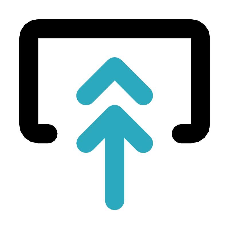 <svg fill="#000000" width="800px" height="800px" viewBox="0 0 24 24" id="upload-double-arrow" data-name="Flat Color" xmlns="http://www.w3.org/2000/svg" class="icon flat-color"><path id="secondary" d="M8.29,10.71a1,1,0,0,1,0-1.42l3-3a1,1,0,0,1,1.42,0l3,3a1,1,0,0,1,0,1.42,1,1,0,0,1-1.42,0L12,8.41l-2.29,2.3A1,1,0,0,1,8.29,10.71Zm4.42.58a1,1,0,0,0-1.42,0l-3,3a1,1,0,0,0,1.42,1.42L11,14.41V21a1,1,0,0,0,2,0V14.41l1.29,1.3a1,1,0,0,0,1.42,0,1,1,0,0,0,0-1.42Z" style="fill: rgb(44, 169, 188);"></path><path id="primary" d="M20,15H19a1,1,0,0,1,0-2h1V4H4v9H5a1,1,0,0,1,0,2H4a2,2,0,0,1-2-2V4A2,2,0,0,1,4,2H20a2,2,0,0,1,2,2v9A2,2,0,0,1,20,15Z" style="fill: rgb(0, 0, 0);"></path></svg>