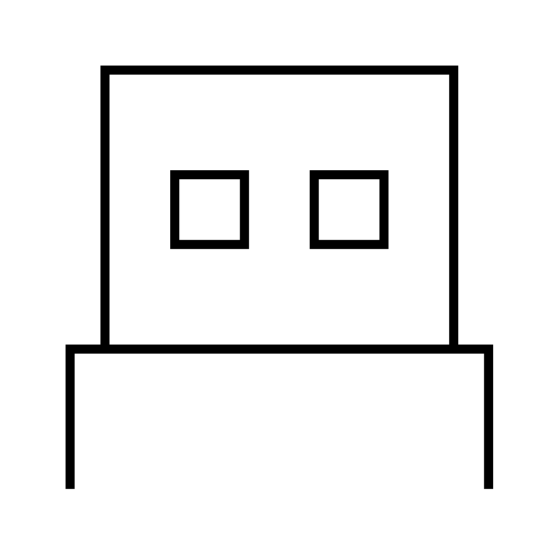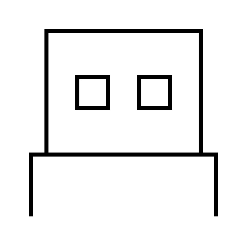 <svg width="800px" height="800px" viewBox="0 0 64 64" xmlns="http://www.w3.org/2000/svg" fill="none" stroke="#000000"><polyline points="56 56 56 40 8 40 8 56"/><polyline points="52 40 52 8 12 8 12 40"/><rect x="20" y="20" width="8" height="8"/><rect x="36" y="20" width="8" height="8"/></svg>