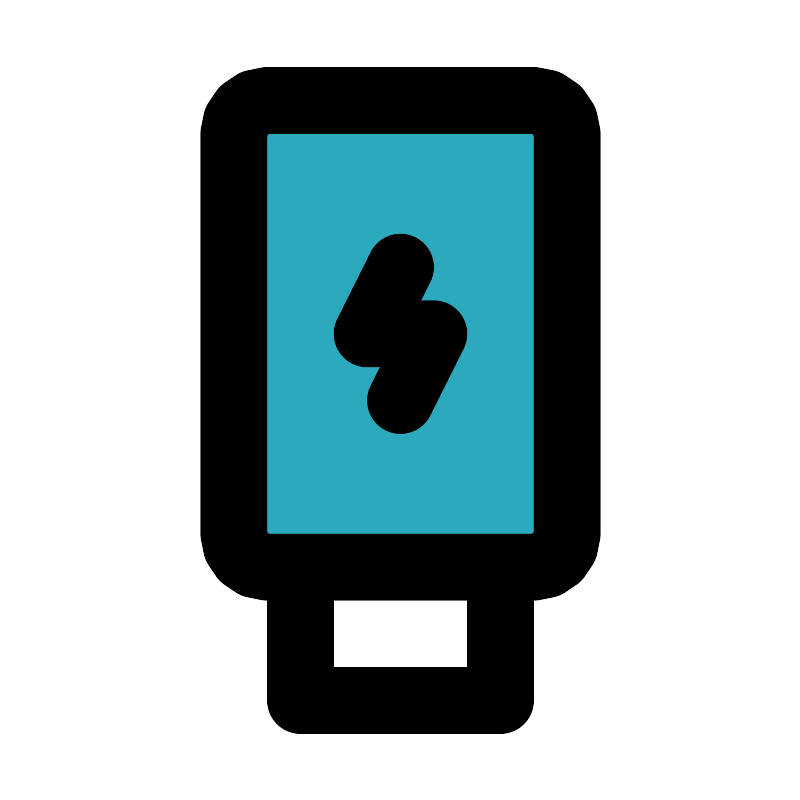 <svg fill="#000000" width="800px" height="800px" viewBox="0 0 24 24" id="usb-flash-drive-plug" data-name="Flat Line" xmlns="http://www.w3.org/2000/svg" class="icon flat-line"><rect id="secondary" x="7" y="3" width="10" height="14" rx="1" style="fill: rgb(44, 169, 188); stroke-width: 2;"></rect><polyline id="primary" points="12 12 13 10 11 10 12 8" style="fill: none; stroke: rgb(0, 0, 0); stroke-linecap: round; stroke-linejoin: round; stroke-width: 2;"></polyline><path id="primary-2" data-name="primary" d="M15,21H9V17h6ZM16,3H8A1,1,0,0,0,7,4V16a1,1,0,0,0,1,1h8a1,1,0,0,0,1-1V4A1,1,0,0,0,16,3Z" style="fill: none; stroke: rgb(0, 0, 0); stroke-linecap: round; stroke-linejoin: round; stroke-width: 2;"></path></svg>