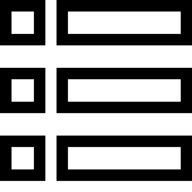 <path d="M5 0v4h12v-4h-12zM16 3h-10v-2h10v2zM5 10h12v-4h-12v4zM6 7h10v2h-10v-2zM5 16h12v-4h-12v4zM6 13h10v2h-10v-2zM0 4h4v-4h-4v4zM1 1h2v2h-2v-2zM0 10h4v-4h-4v4zM1 7h2v2h-2v-2zM0 16h4v-4h-4v4zM1 13h2v2h-2v-2z" fill="#000000" />