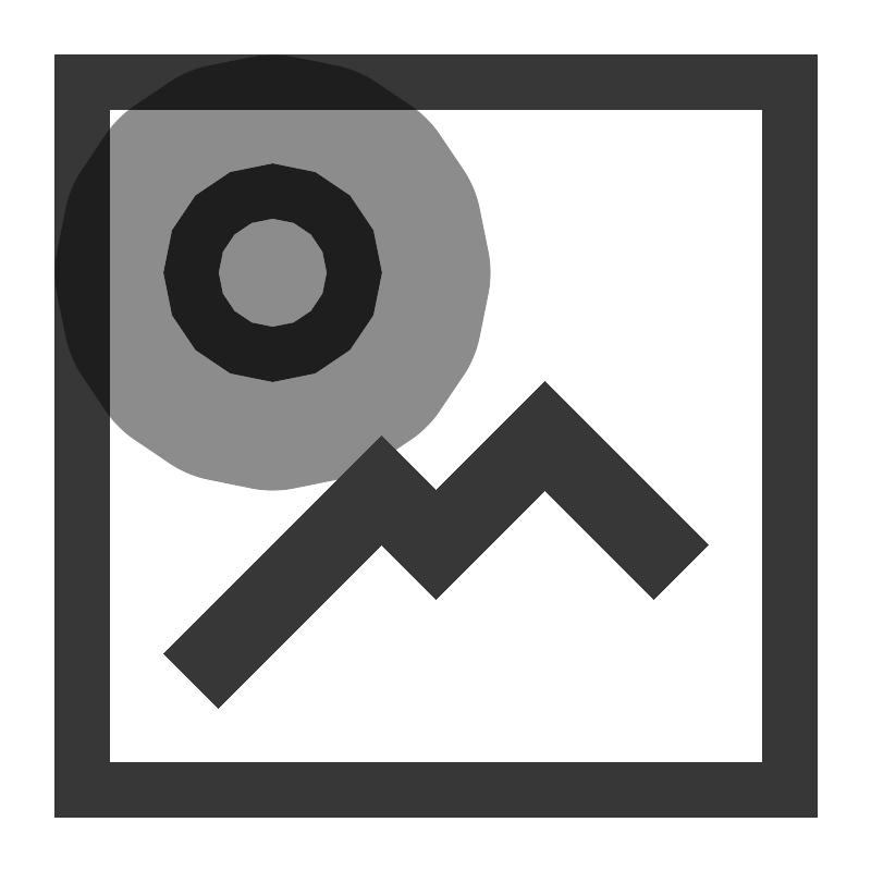 <svg width="800px" height="800px" viewBox="0 0 16 16" xmlns:dc="http://purl.org/dc/elements/1.1/" xmlns:cc="http://creativecommons.org/ns#" xmlns:rdf="http://www.w3.org/1999/02/22-rdf-syntax-ns#" xmlns="http://www.w3.org/2000/svg" version="1.1" id="svg7384"><metadata id="metadata90"><rdf:RDF><cc:Work><dc:format>image/svg+xml</dc:format><dc:type rdf:resource="http://purl.org/dc/dcmitype/StillImage"/><dc:title/><dc:date>2021</dc:date><dc:creator><cc:Agent><dc:title>Timothée Giet</dc:title></cc:Agent></dc:creator><cc:license rdf:resource="http://creativecommons.org/licenses/by-sa/4.0/"/></cc:Work><cc:License rdf:about="http://creativecommons.org/licenses/by-sa/4.0/"><cc:permits rdf:resource="http://creativecommons.org/ns#Reproduction"/><cc:permits rdf:resource="http://creativecommons.org/ns#Distribution"/><cc:requires rdf:resource="http://creativecommons.org/ns#Notice"/><cc:requires rdf:resource="http://creativecommons.org/ns#Attribution"/><cc:permits rdf:resource="http://creativecommons.org/ns#DerivativeWorks"/><cc:requires rdf:resource="http://creativecommons.org/ns#ShareAlike"/></cc:License></rdf:RDF></metadata><path id="rect4082" d="M1 1v14h14V1zm1 1h12v12H2z" style="fill:#373737;fill-opacity:1;stroke:none;stroke-width:.875"/><path id="path847" d="M5 3a2 2 0 0 0-2 2 2 2 0 0 0 2 2 2 2 0 0 0 2-2 2 2 0 0 0-2-2zm0 1a1 1 0 0 1 1 1 1 1 0 0 1-1 1 1 1 0 0 1-1-1 1 1 0 0 1 1-1z" style="opacity:1;vector-effect:none;fill:#373737;fill-opacity:1;stroke:none;stroke-width:4;stroke-linecap:square;stroke-linejoin:round;stroke-miterlimit:4;stroke-dasharray:none;stroke-dashoffset:3.20000005;stroke-opacity:.55063291"/><path id="path869" d="m3 12 1 1 3-3 1 1 2-2 2 2 1-1-3-3-2 2-1-1z" style="fill:#373737;fill-opacity:1;stroke:none;stroke-width:1px;stroke-linecap:butt;stroke-linejoin:miter;stroke-opacity:1"/></svg>