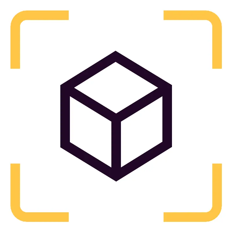 <svg width="800px" height="800px" viewBox="0 0 200 200" xmlns="http://www.w3.org/2000/svg"><title>Virtual Reality icons</title><line x1="100" y1="101.93" x2="100" y2="149.93" fill="none" stroke="#220728" stroke-miterlimit="10" stroke-width="8"/><line x1="56" y1="75.5" x2="100" y2="102.49" fill="none" stroke="#220728" stroke-miterlimit="10" stroke-width="7.94"/><line x1="144" y1="75.5" x2="100" y2="102.49" fill="none" stroke="#220728" stroke-miterlimit="10" stroke-width="8"/><polygon points="144 75.5 144 124.28 100 151.6 56 124.61 56 75.5 99.5 48.4 144 75.5" fill="none" stroke="#220728" stroke-miterlimit="10" stroke-width="8"/><path d="M187,141v36a10,10,0,0,1-10,10H141" fill="none" stroke="#ffc548" stroke-miterlimit="10" stroke-width="8"/><path d="M141,13h36a10,10,0,0,1,10,10V59" fill="none" stroke="#ffc548" stroke-miterlimit="10" stroke-width="8"/><path d="M13,59V23A10,10,0,0,1,23,13H59" fill="none" stroke="#ffc548" stroke-miterlimit="10" stroke-width="8"/><path d="M59,187H23a10,10,0,0,1-10-10V141" fill="none" stroke="#ffc548" stroke-miterlimit="10" stroke-width="8"/></svg>