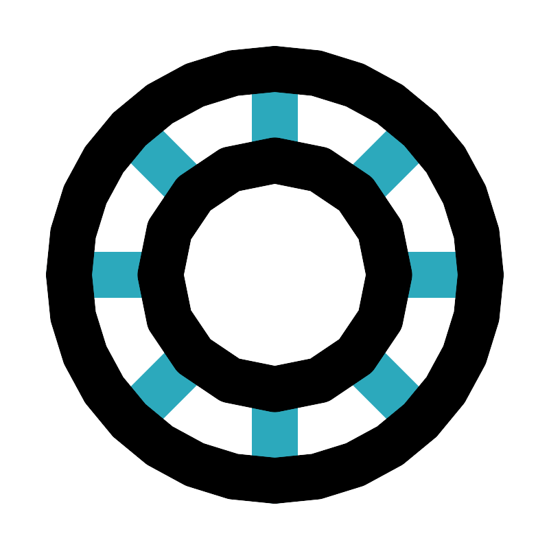 <svg fill="#000000" width="800px" height="800px" viewBox="0 0 24 24" id="vsco" data-name="Line Color" xmlns="http://www.w3.org/2000/svg" class="icon line-color"><path id="secondary" d="M12,3V7m6.17-1.17L15.54,8.46m2.63,9.71-2.63-2.63M5.83,18.17l2.63-2.63M5.83,5.83,8.46,8.46M21,12H17m-5,9V17M3,12H7" style="fill: none; stroke: rgb(44, 169, 188); stroke-linecap: round; stroke-linejoin: round; stroke-width: 2;"></path><path id="primary" d="M17,12a5,5,0,1,0-5,5A5,5,0,0,0,17,12Zm4,0a9,9,0,1,1-9-9A9,9,0,0,1,21,12Z" style="fill: none; stroke: rgb(0, 0, 0); stroke-linecap: round; stroke-linejoin: round; stroke-width: 2;"></path></svg>
