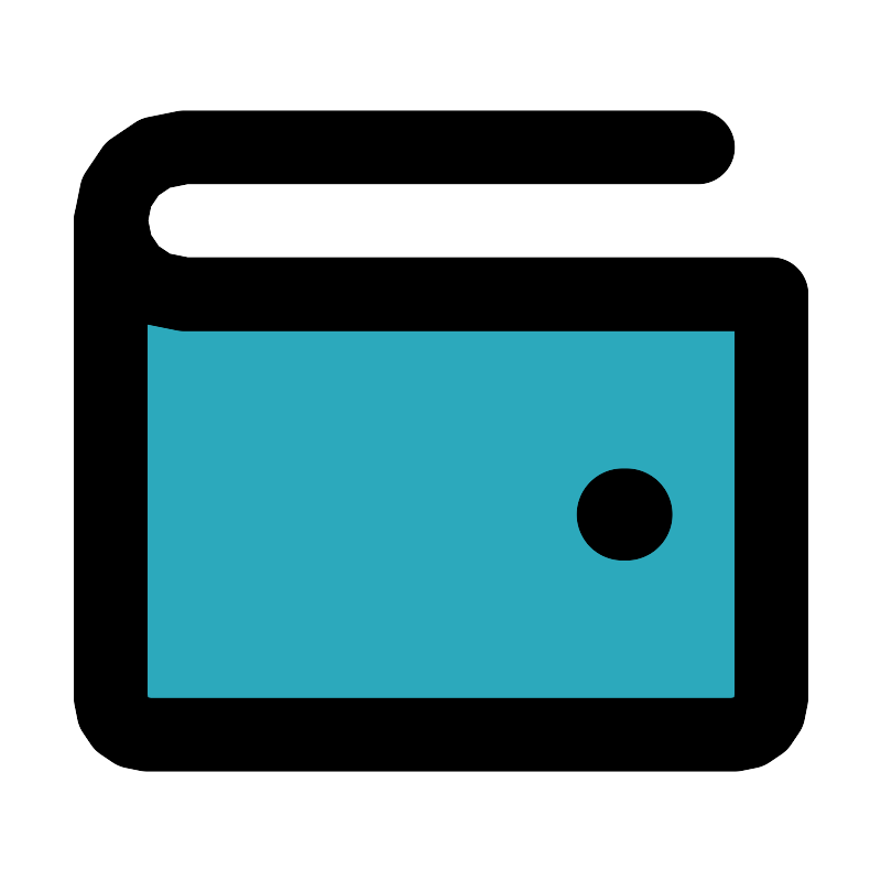 <svg fill="#000000" width="800px" height="800px" viewBox="0 0 24 24" id="wallet-5" data-name="Flat Line" xmlns="http://www.w3.org/2000/svg" class="icon flat-line"><path id="secondary" d="M21,8V19a1,1,0,0,1-1,1H4a1,1,0,0,1-1-1V6A2,2,0,0,0,5,8Z" style="fill: rgb(44, 169, 188); stroke-width: 2;"></path><line id="primary-upstroke" x1="16.95" y1="14" x2="17.05" y2="14" style="fill: none; stroke: rgb(0, 0, 0); stroke-linecap: round; stroke-linejoin: round; stroke-width: 2.5;"></line><path id="primary" d="M21,8V19a1,1,0,0,1-1,1H4a1,1,0,0,1-1-1V6A2,2,0,0,0,5,8Z" style="fill: none; stroke: rgb(0, 0, 0); stroke-linecap: round; stroke-linejoin: round; stroke-width: 2;"></path><path id="primary-2" data-name="primary" d="M21,8H5A2,2,0,0,1,3,6H3A2,2,0,0,1,5,4H19" style="fill: none; stroke: rgb(0, 0, 0); stroke-linecap: round; stroke-linejoin: round; stroke-width: 2;"></path></svg>